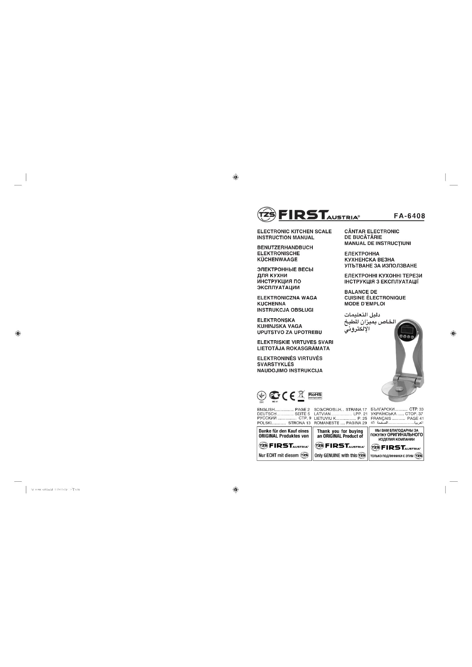 FA6408 - Balances de cuisine First Austria - Notice d'utilisation et mode d'emploi gratuit
