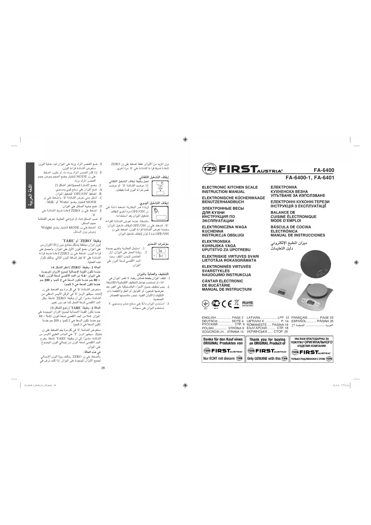 FA64011 - Balances de cuisine First Austria - Notice d'utilisation et mode d'emploi gratuit