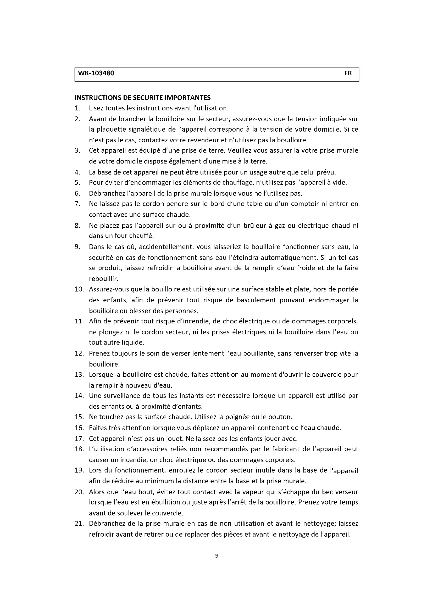 WK103480 - Bouilloire WAVES - Notice d'utilisation et mode d'emploi gratuit