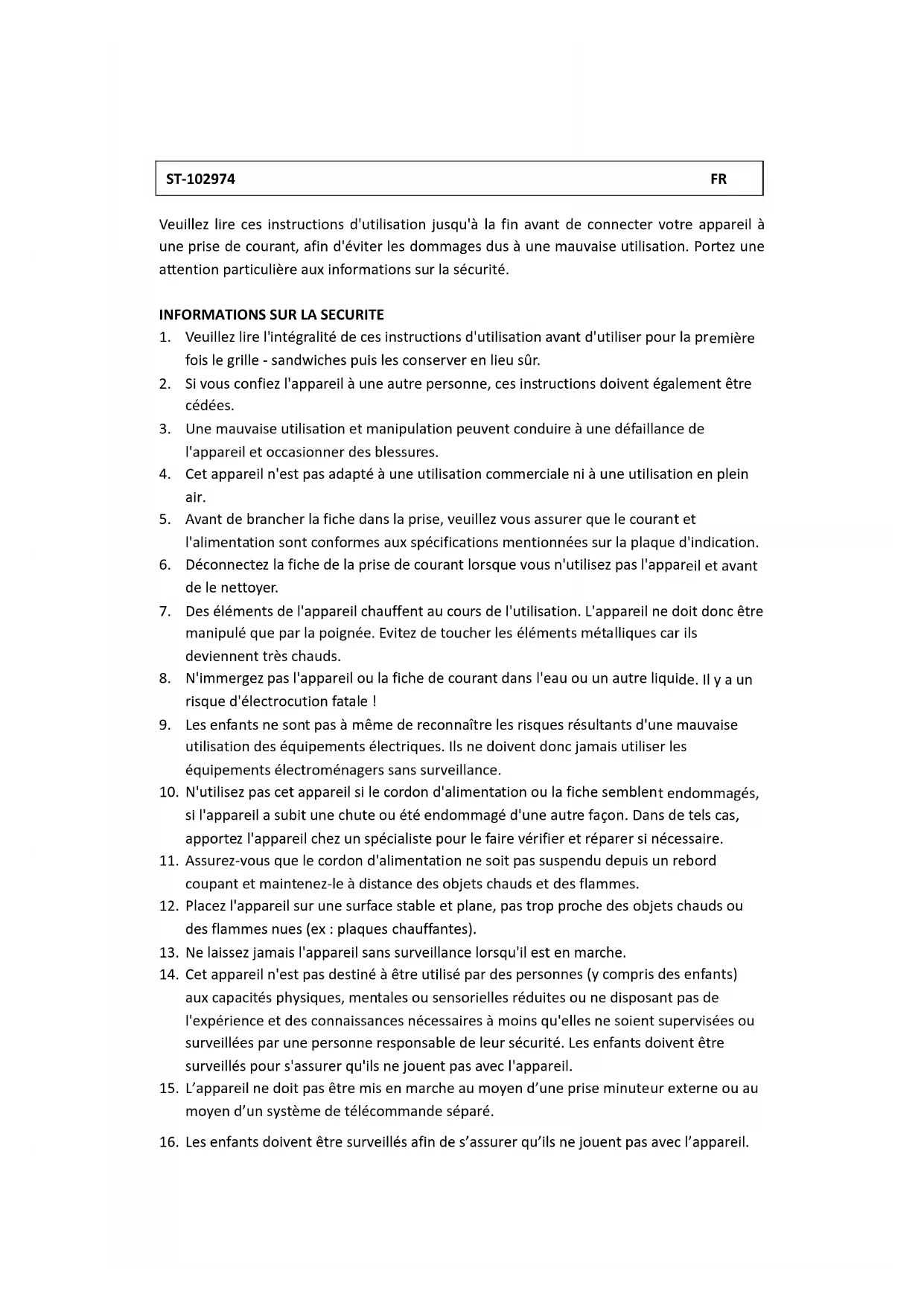 - Veuillez lore l'intégralité de ces instructions d'utilisation avant d'utiliser pour la première fois le grille - sandwiches puis les conserver en lieu sûr.