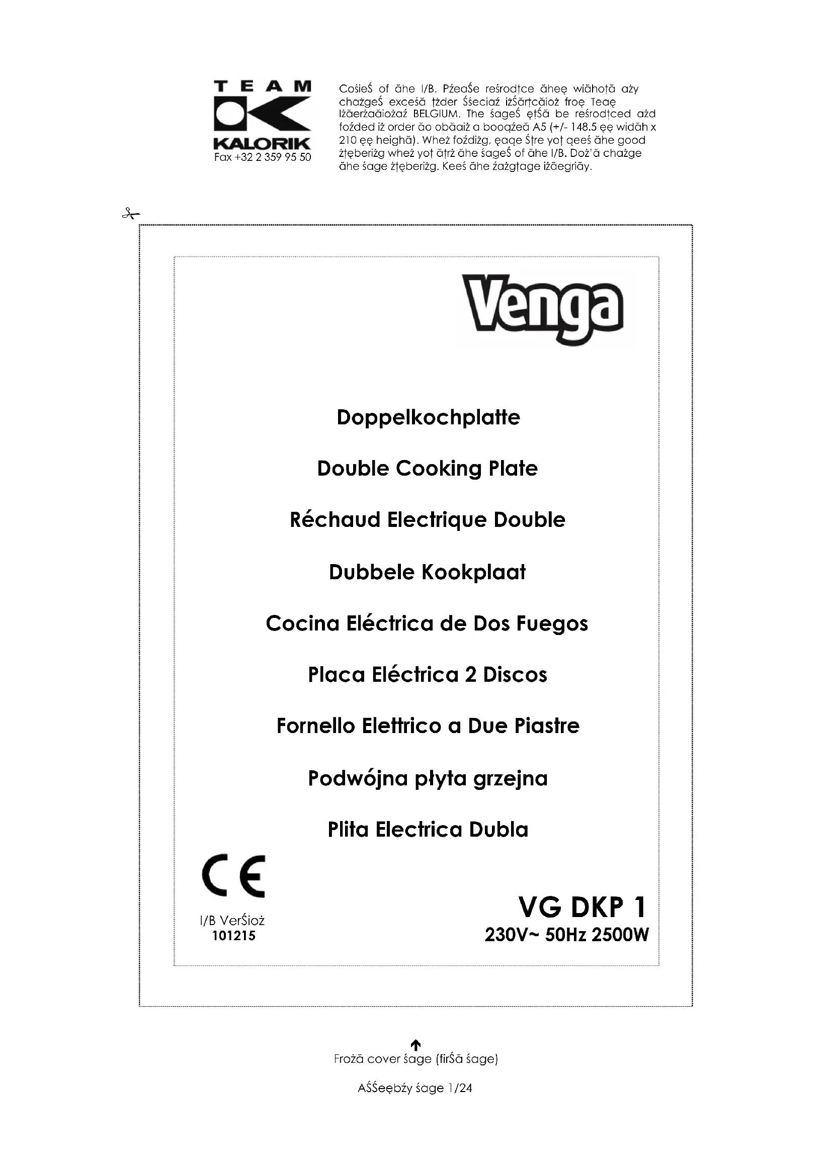 Retrouvez gratuitement la notice de l'appareil VG DKP 1 Venga au format PDF.