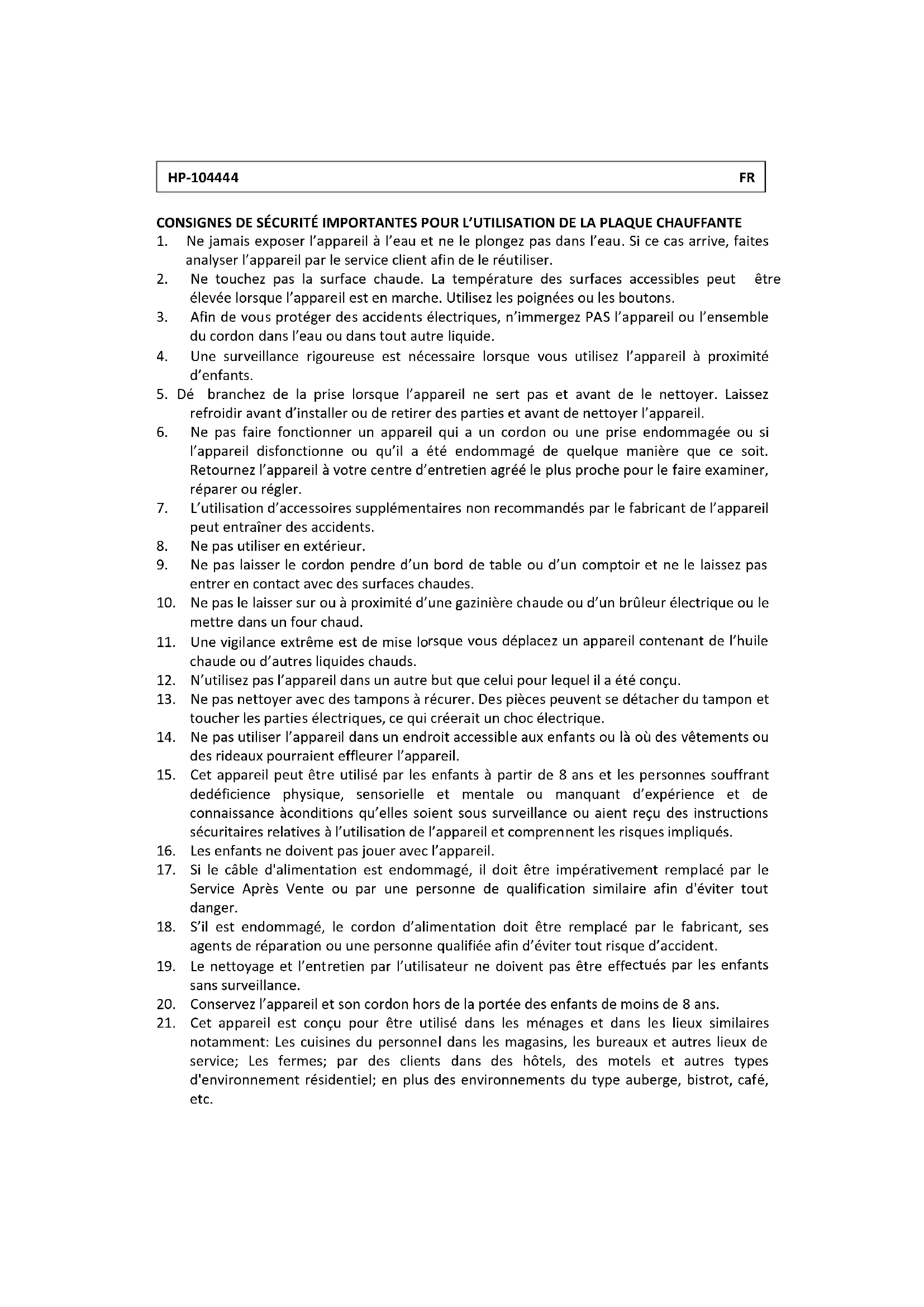Pour une performance de longue durée, évitez de faire tomber des objets sur la plaque chauffante Lorsque vous utilisez cette plaque chauffante pour la première fois, il peut y avoir de la fumée, ceci est normal et ne constitue pas un danger.