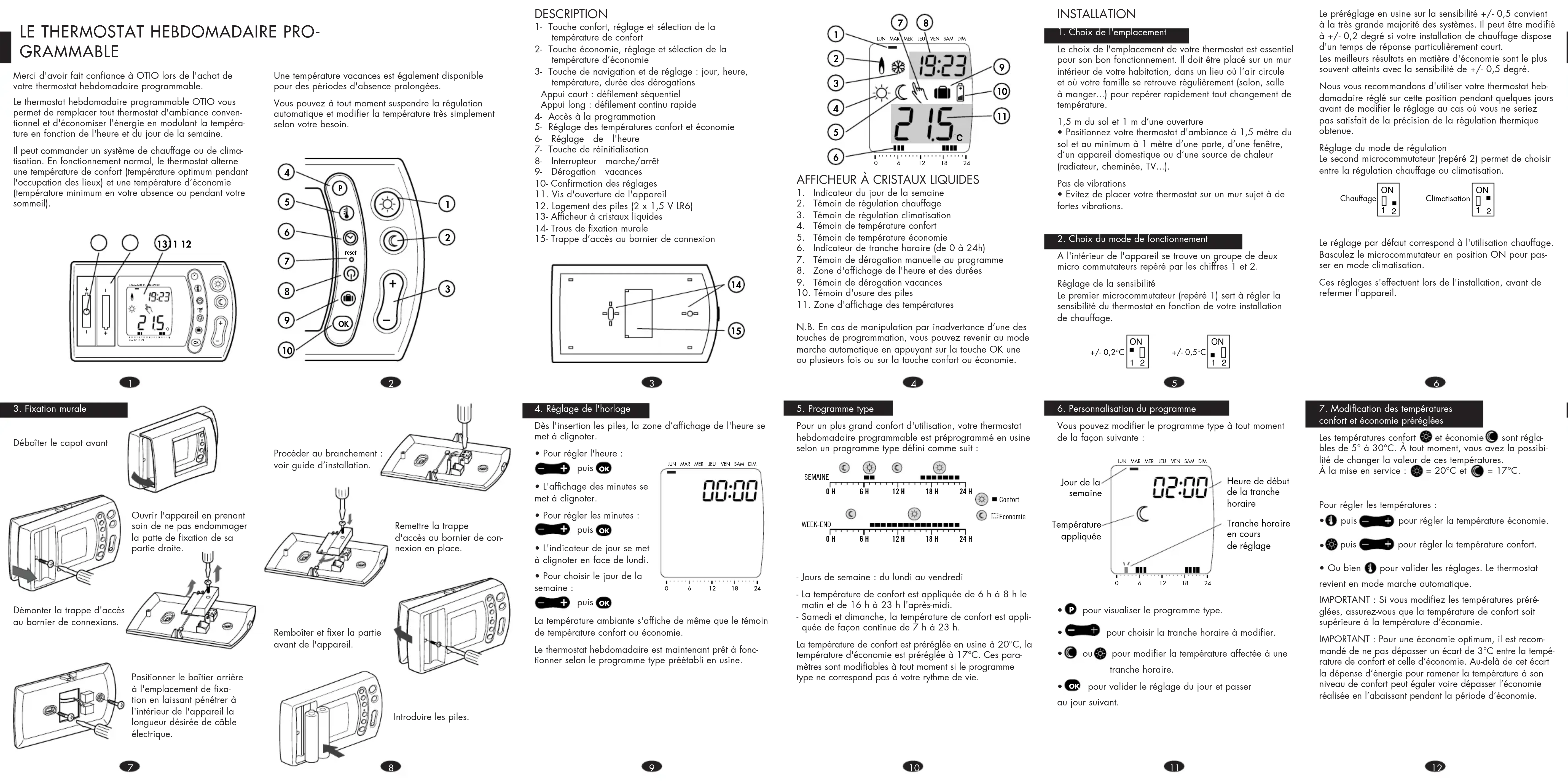 Merci d'avoir fait confiance à OTIO lors de l'achat de votre thermostat hebdomadaire programmable. Le thermostat hebdomadaire programmable OTIO vous permet de remplacer tout thermostat d'ambiance conven- tionnel et d'économiser l'énergie en modulant la tempéra- ture en fonction de l'heure et du jour de la semaine. Il peut commander un système de chauffage ou de clima- tisation. En fonctionnement normal, le thermostat alterne une température de confort (température optimum pendant l'occupation des lieux) et une température d’économie (température minimum en votre absence ou pendant votre sommeil).