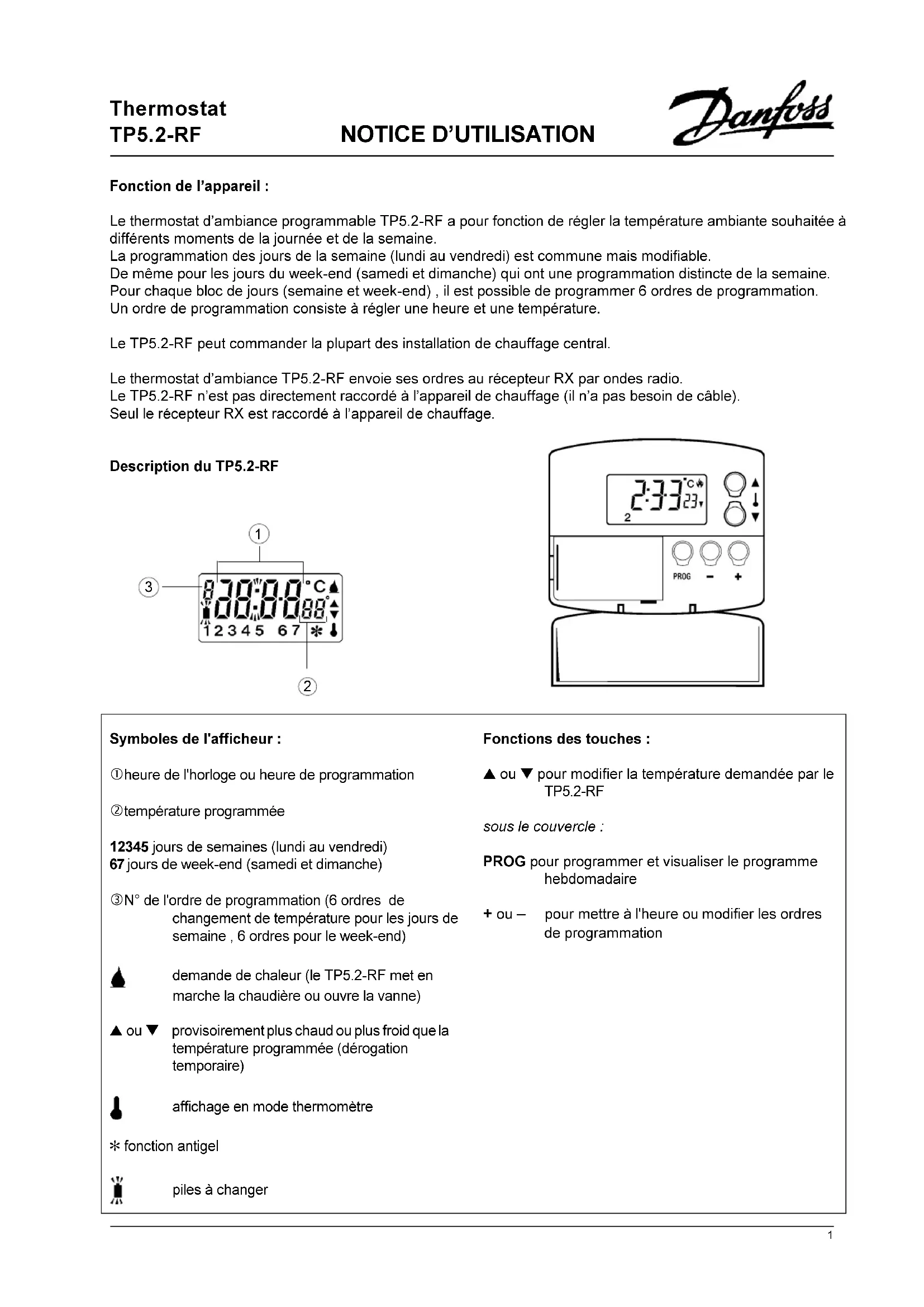 Retrouvez gratuitement la notice de l'appareil TP5.2RF DANFOSS au format PDF.