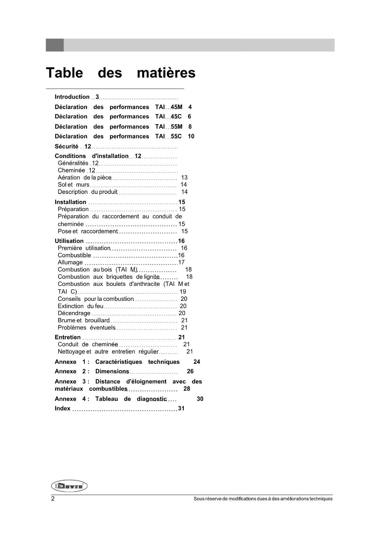 TAI 45M - Chauffage DOVRE - Notice d'utilisation et mode d'emploi gratuit