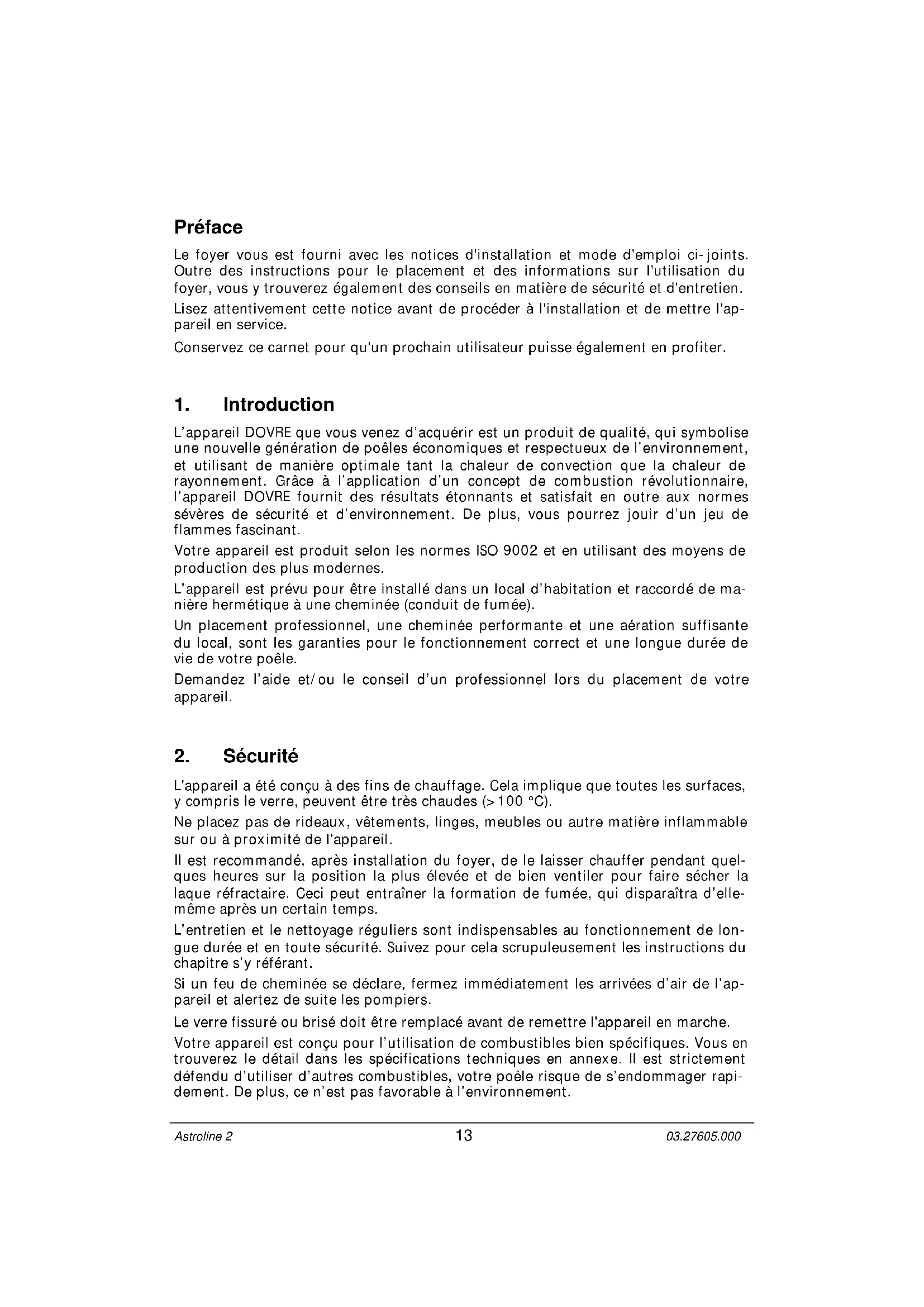 L'appareil DOVRE que vous venez d'acquérir est un produit de qualité, qui symbolise une nouvelle génération de poêles économiques et respectueux de l'environnement, et utilisant de manière optimale tant la chaleur de convection que la chaleur de rayonnement. Grâce à l'application d'un concept de combustion révolutionnaire, l'appareil DOVRE fournit des résultats surprenants et satisfait en outre aux normes sévères de sécurité et d'environnement. De plus, vous pourrez jouir d'un jeu de flammes fascinant.