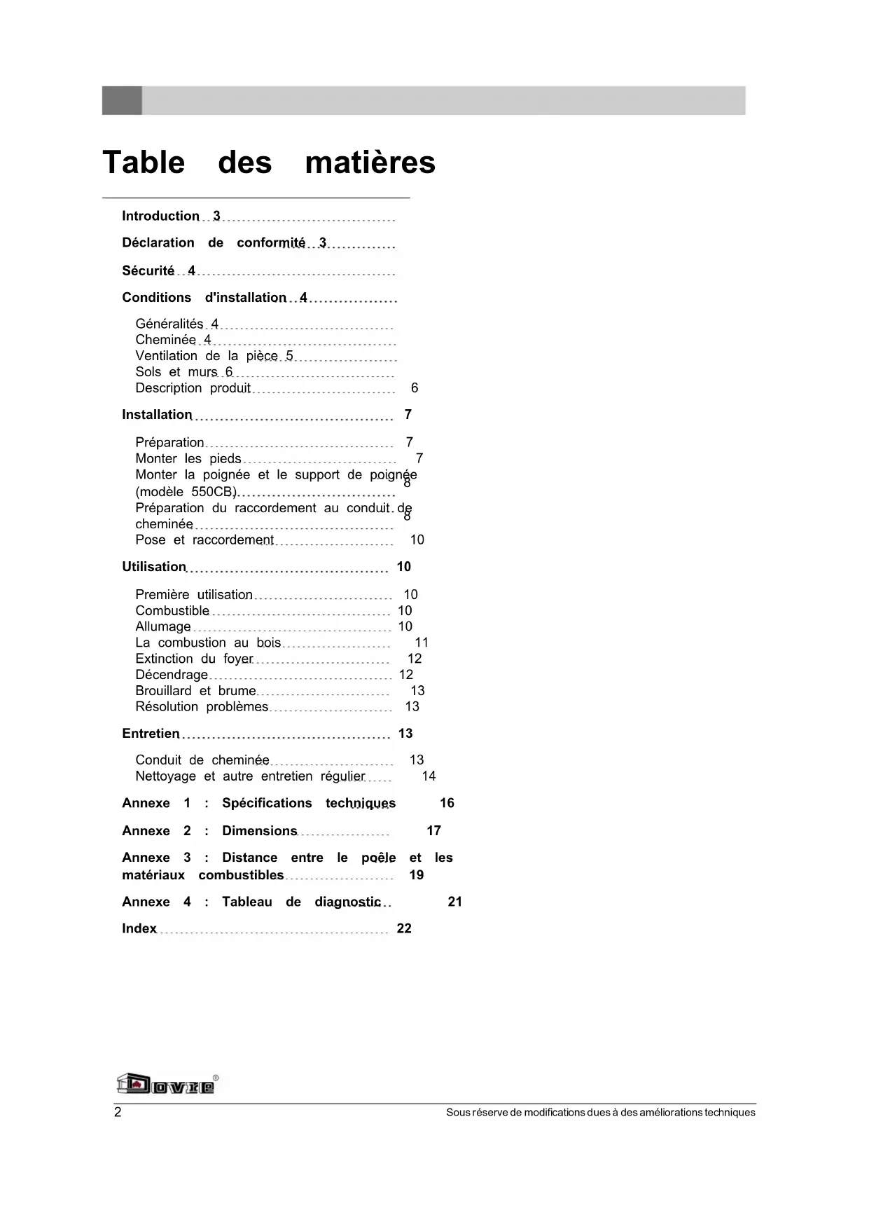 Ce mode d'emploi contient des informations concernant l'installation, l'utilisation et l'entretien en toute sécurité de l'appareil de chauffage DOVRE. Si vous souhaitez receivevoir des informations complémentaires ou des specifications techniques ou si vous rencontres un problème lors de l'installation, veuillez d'abord contacter votre distributeur.