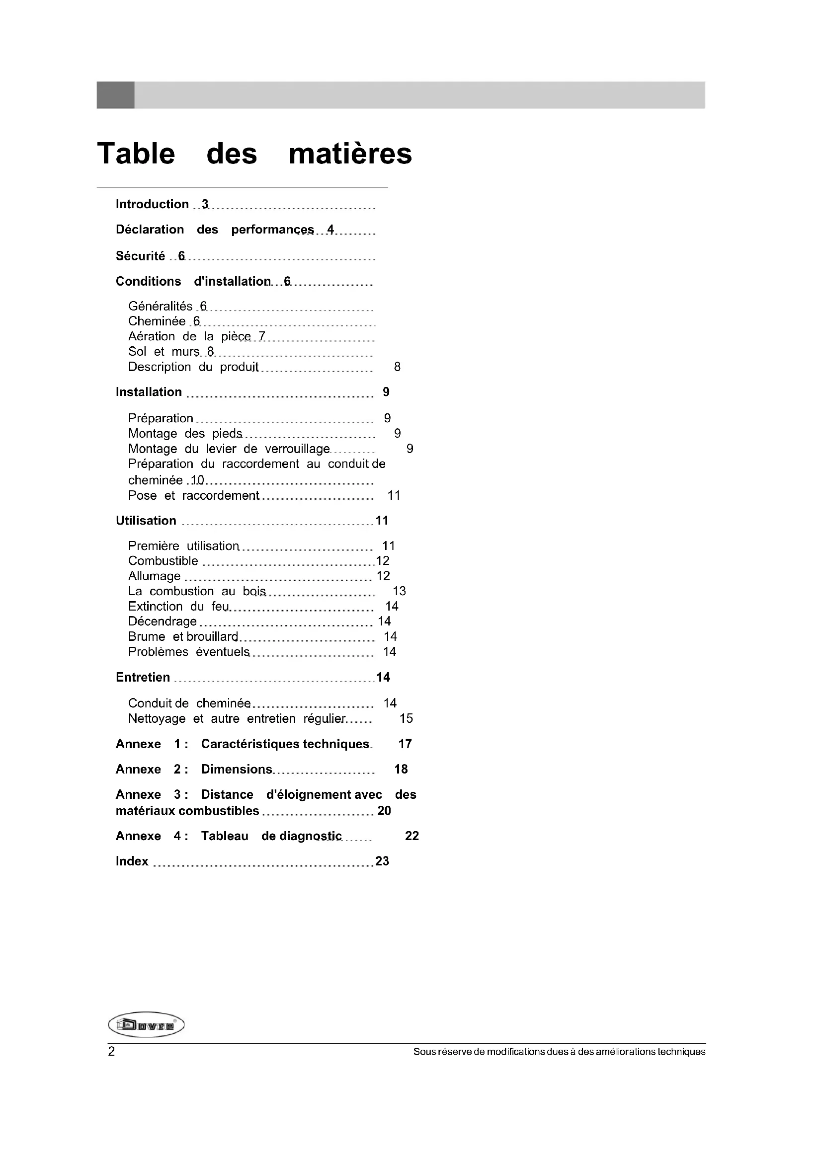 Ce mode d'emploi contient des informations concernant l'installation, l'utilisation et l'entretien en toute sécurité de l'appareil de chauffage DOVRE. Si vous souhaitez recevoir des informations complémentaires ou des spécifications techniques ou si vous rencontrez un problème lors de l'installation, veuillez d'abord contacter votre distributeur.