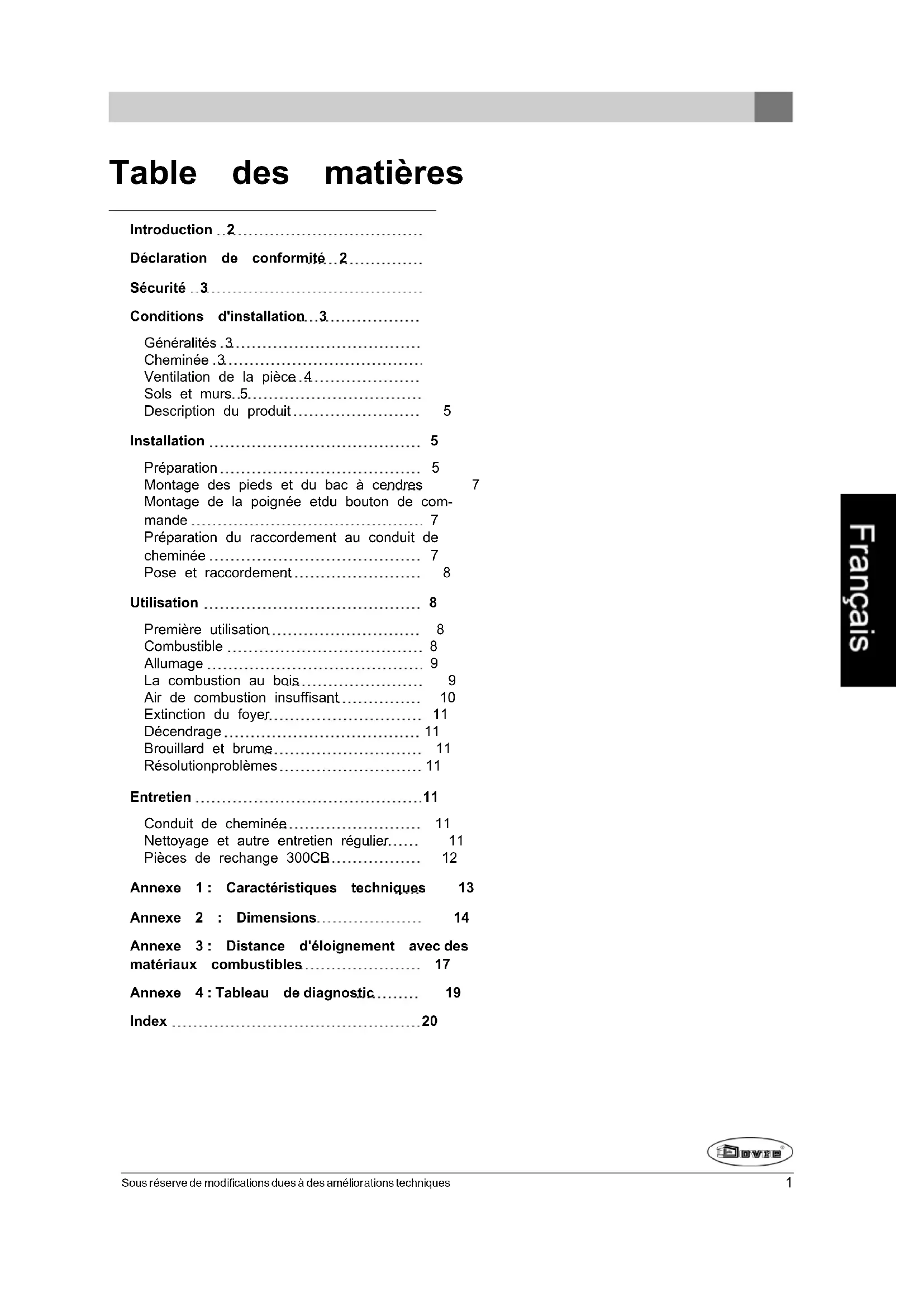 Ce mode d'emploi contient des informations concernant l'installation, l'utilisation et l'entretien en toute sécurité de l'appareil de chauffage DOVRE. Si vous souhaitez receivevoir des informations complémentaires ou des specifications techniques ou si vous rencontrez un problème lors de l'installation, veuilles d'abord contacter votre distributeur.