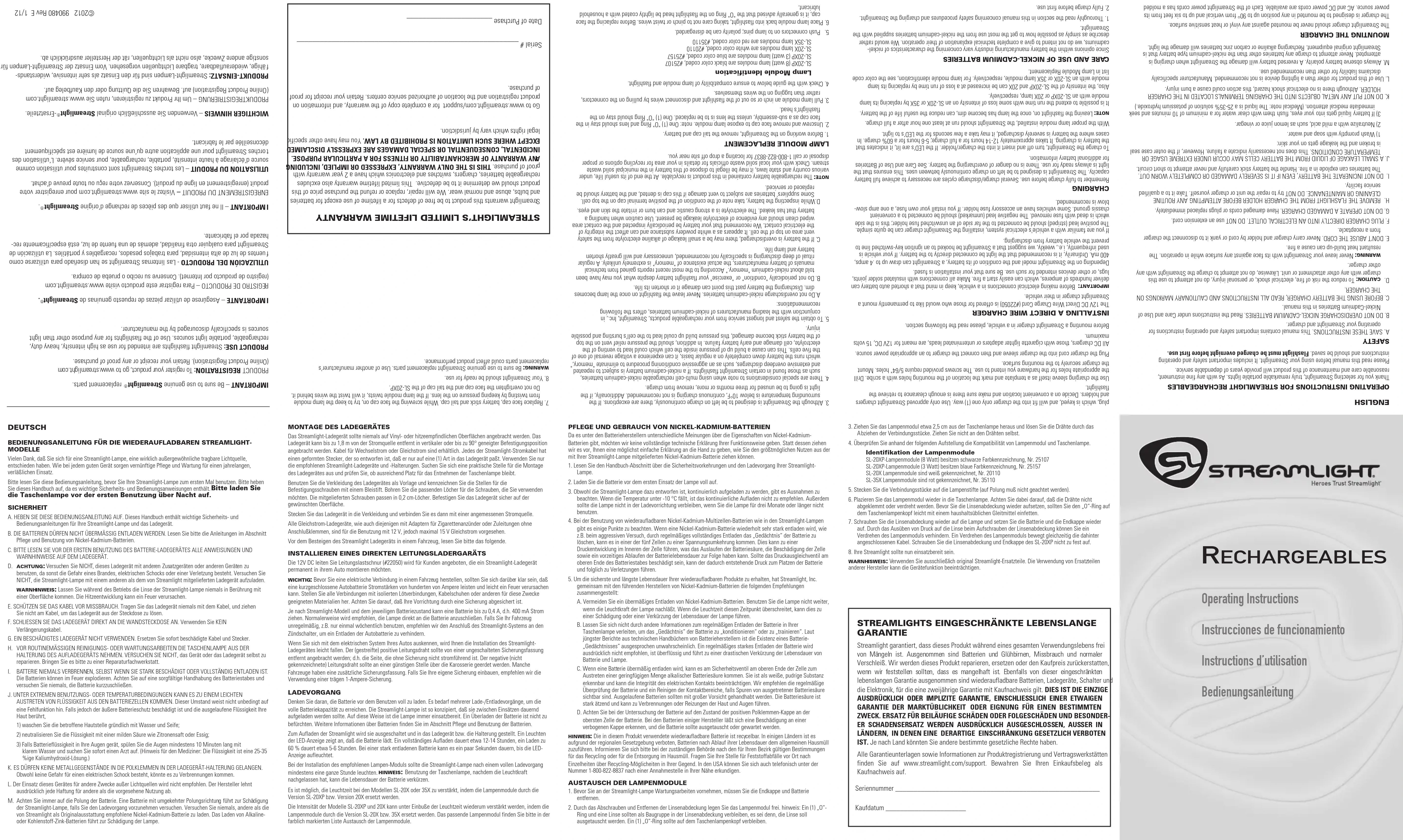 Streamlight garantit ce produit à vie contre défauts, à réception des piles et des ampoules.