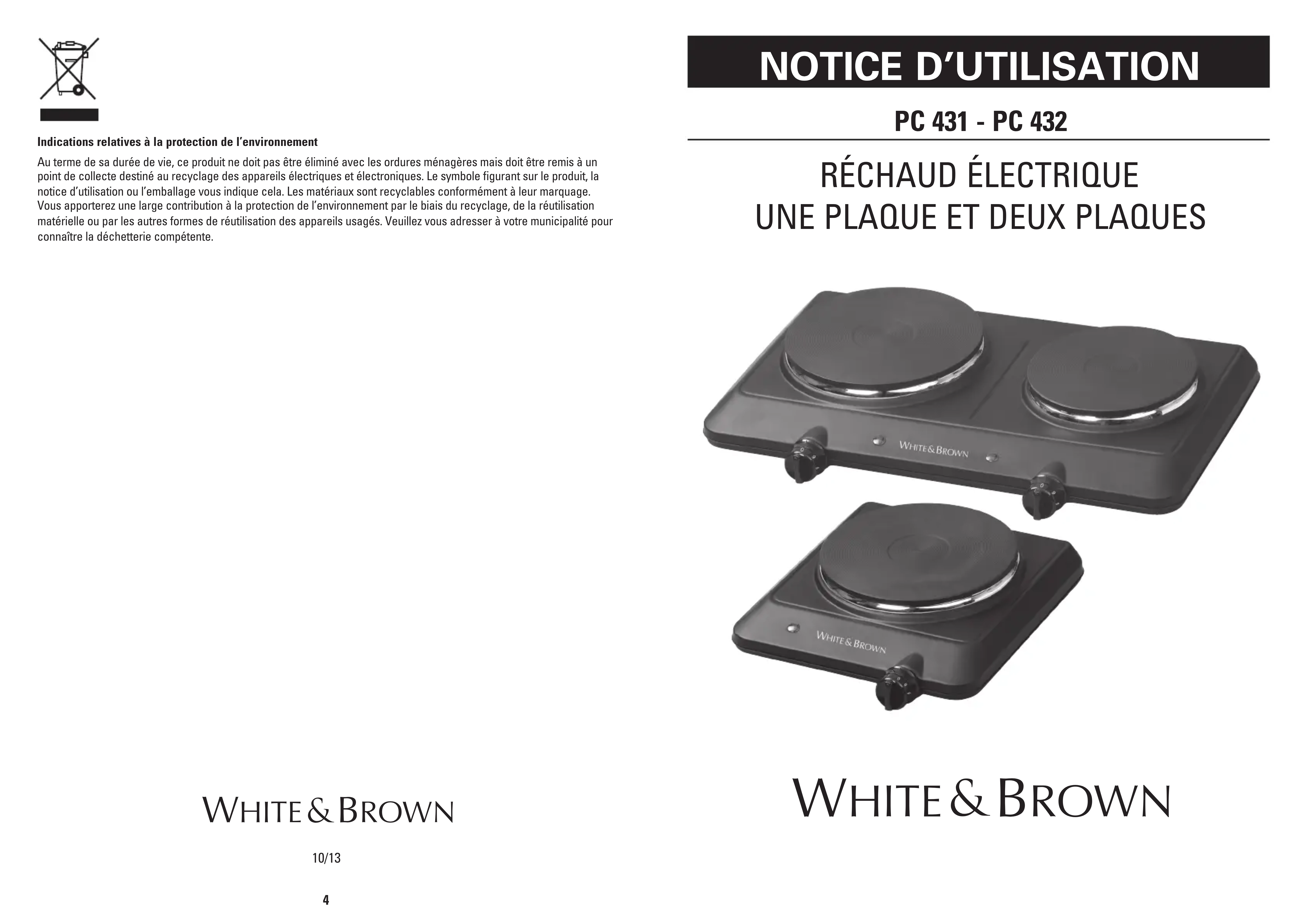 PC 431 - Cuisinière WHITE AND BROWN - Notice d'utilisation et mode d'emploi gratuit