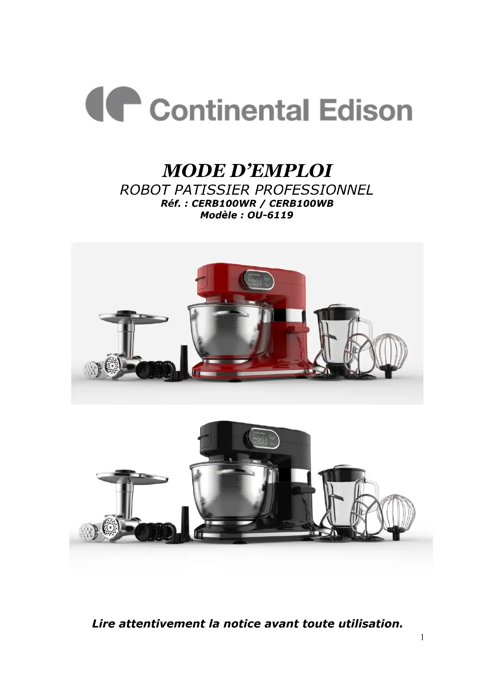 CERB100WB - Robot ménager CONTINENTAL EDISON - Notice d'utilisation et mode d'emploi gratuit