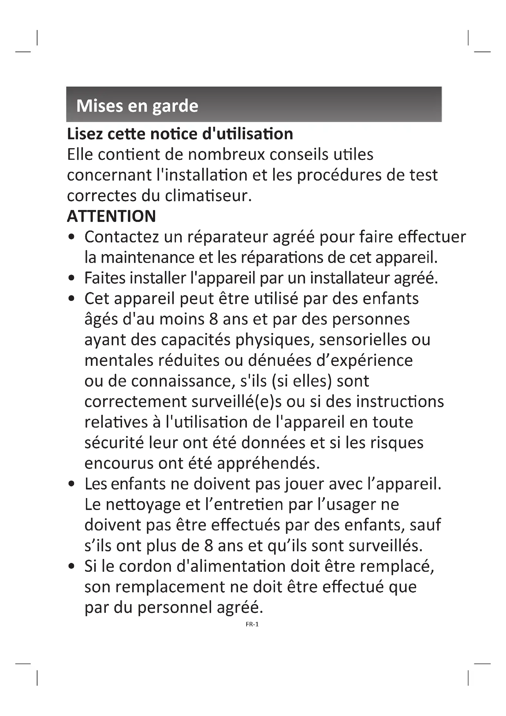 MOROCCO CMI, TSA 91431-91343 MASSY CEDEX - FRANCEMises en garde Lisez cee noce d'ulisaon Elle conent de nombreux conseils ules concernant l'installaon et les procédures de test correctes du climaseur. ATTENTION