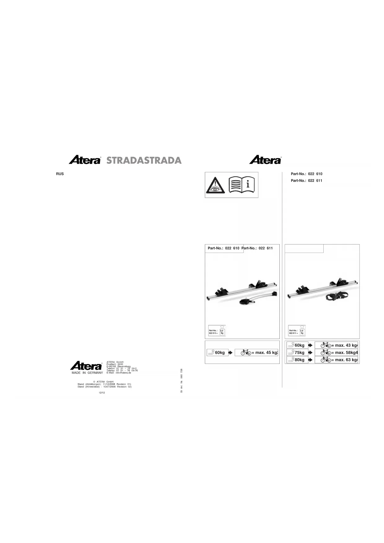 Strada - Porte-vélo Atera - Notice d'utilisation et mode d'emploi gratuit