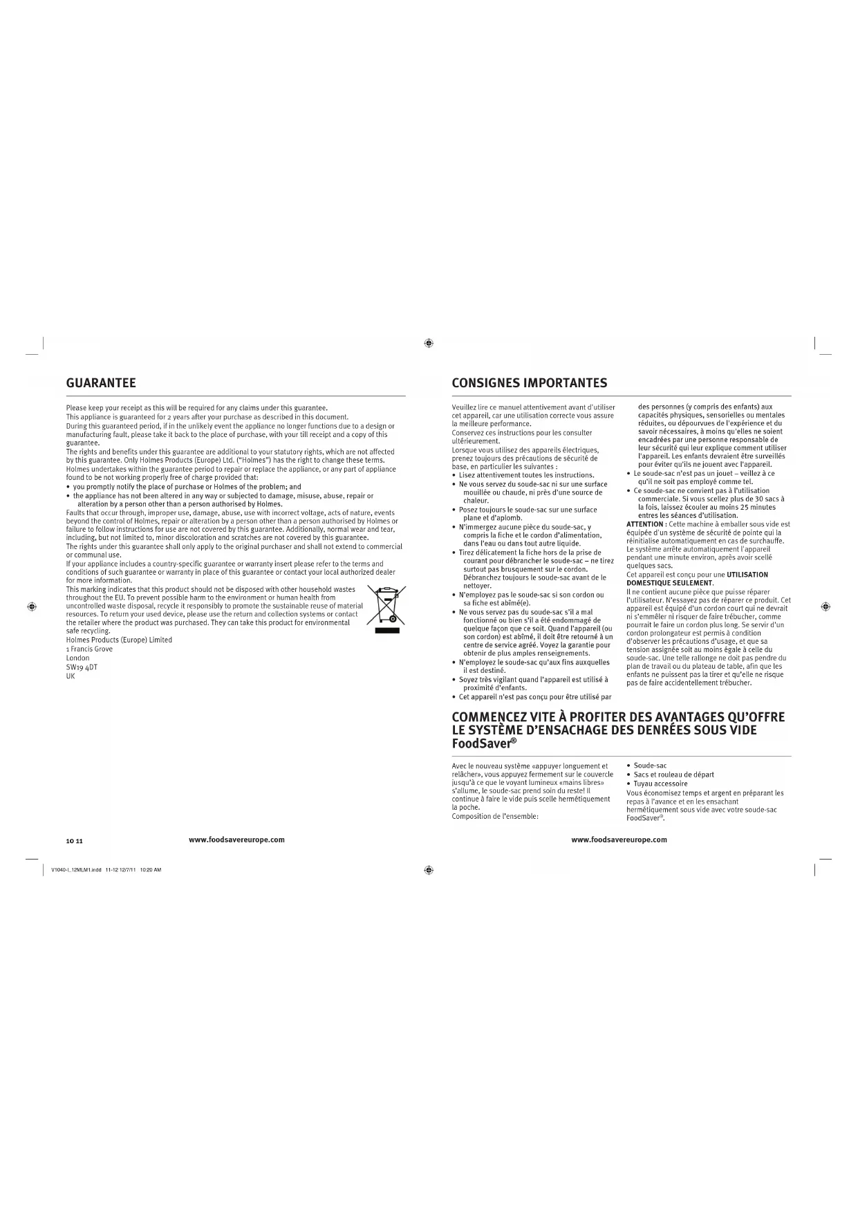 V1040-I_12MLM1.indd 11-12 12/7/11 10:20 AMDéballez soigneusement votre soude-sac FoodSaver