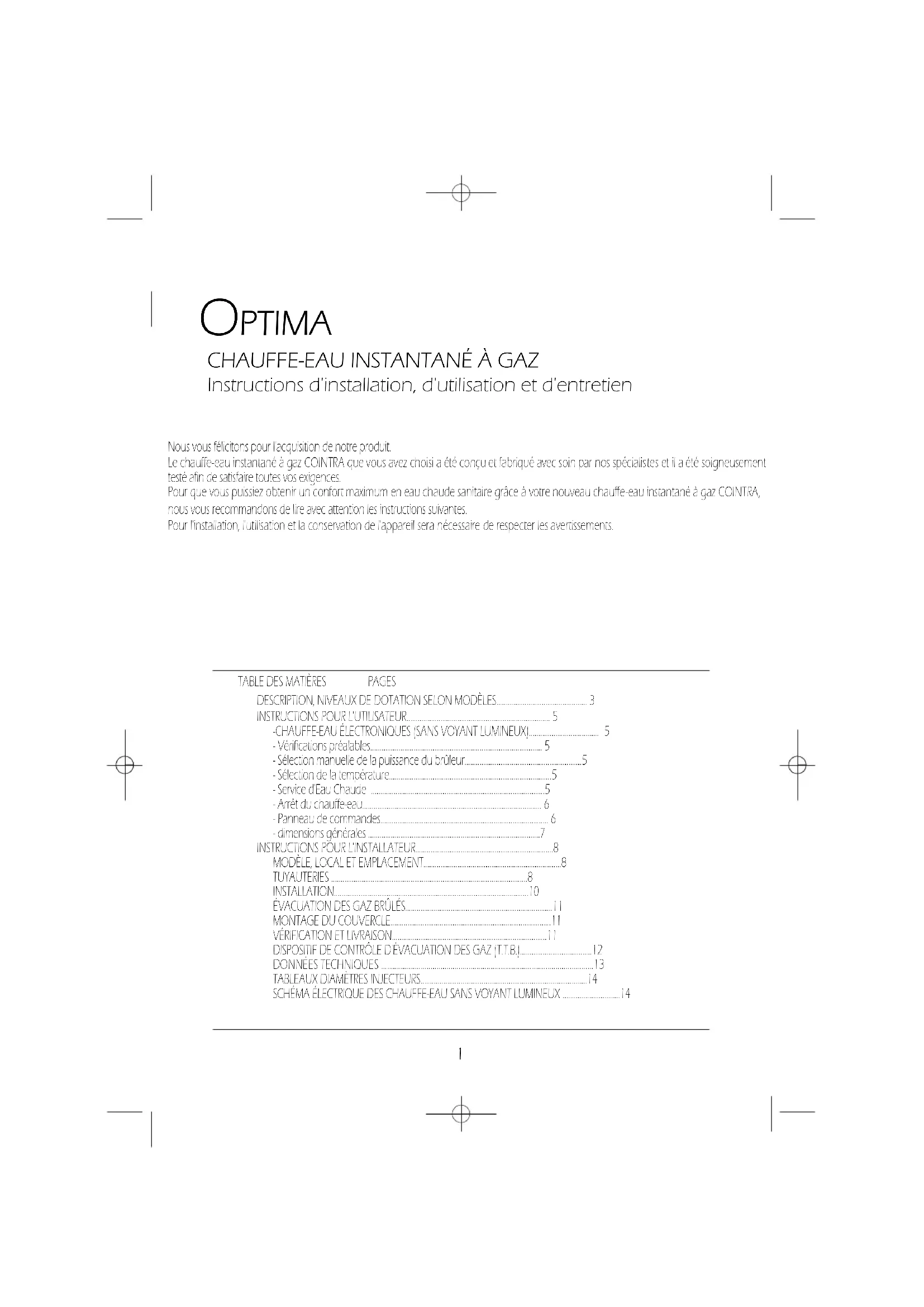 Optima 11 D - Chaudière COINTRA - Notice d'utilisation et mode d'emploi gratuit