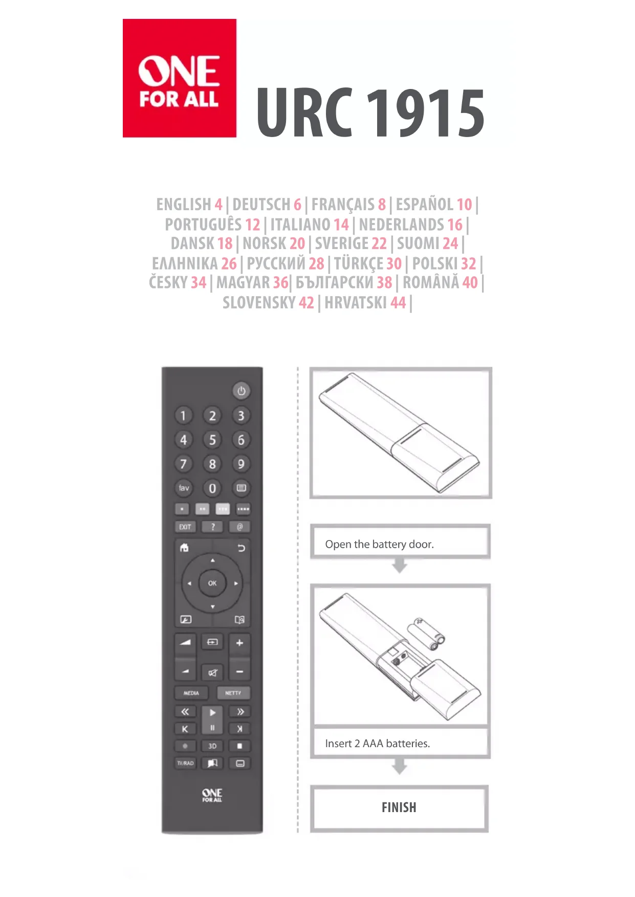 Retrouvez gratuitement la notice de l'appareil URC 1915 ONE FOR ALL au format PDF.