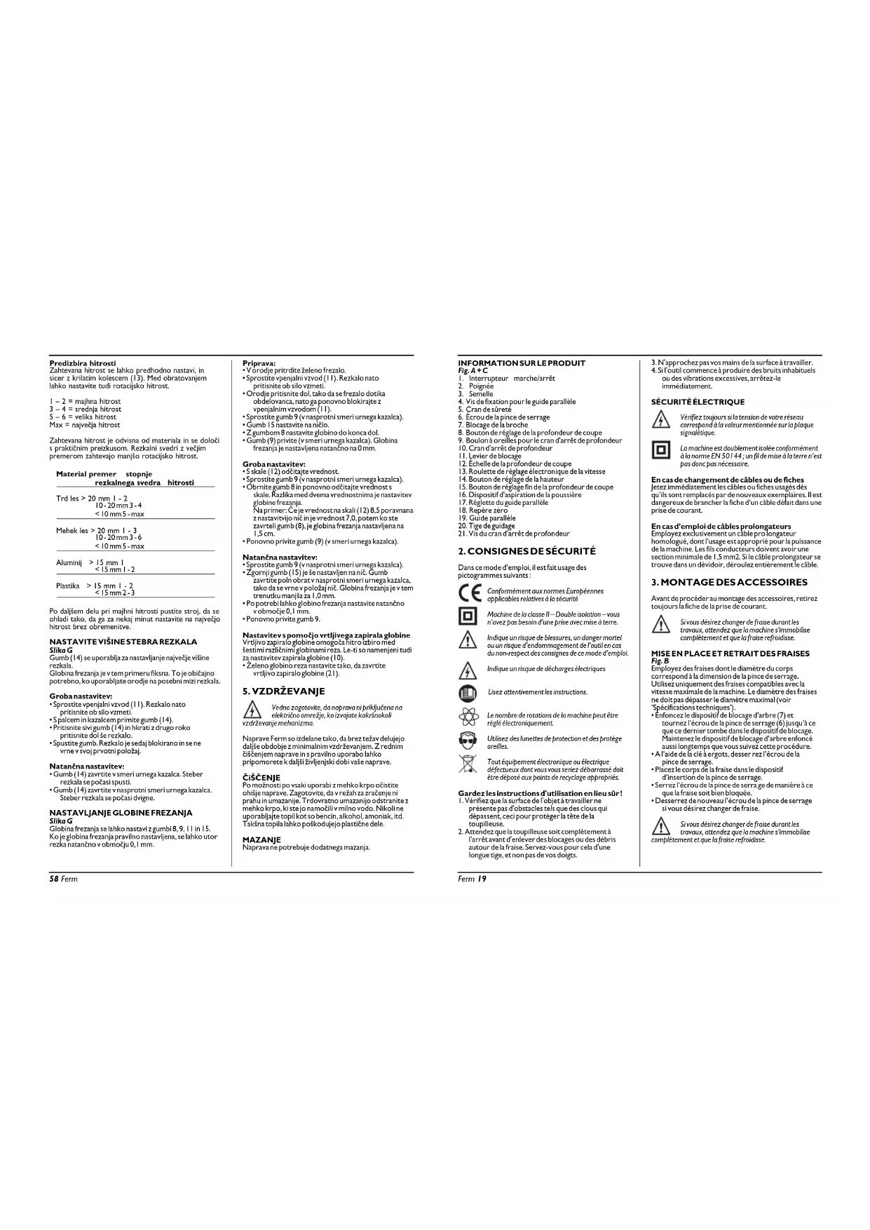 | Informations générales | Poids : 3,5 kg, dimensions : 30 x 25 x 20 cm, garantie de 2 ans, accessoires inclus : guide parallèle, clé de service, fraises de démonstration. |
