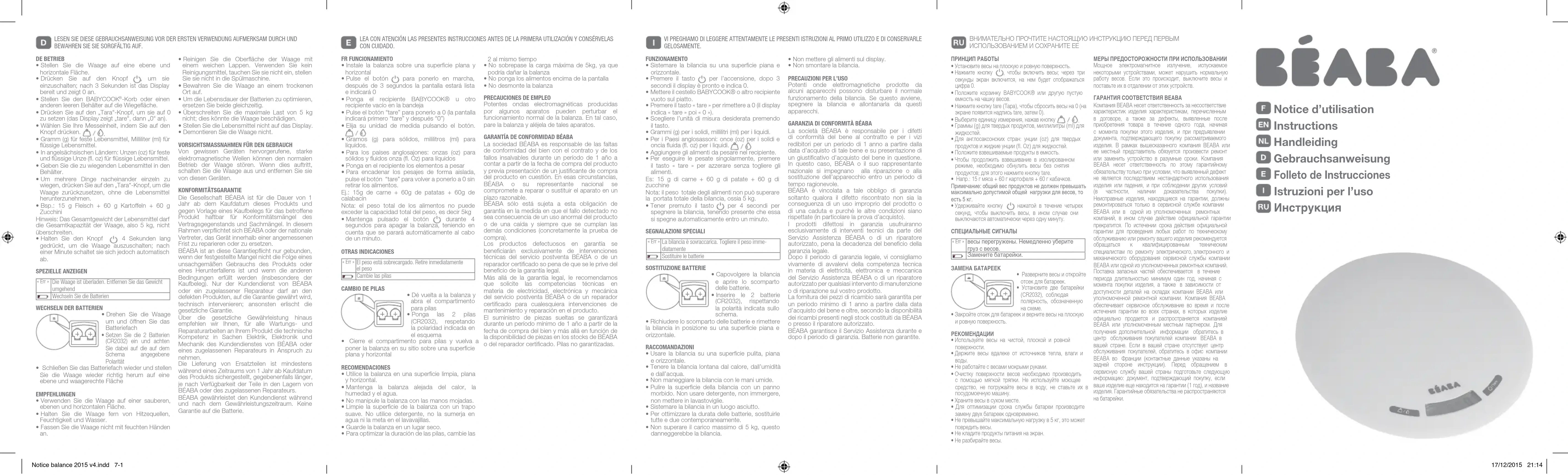 MODE D'EMPLOI Bilancia BEABA