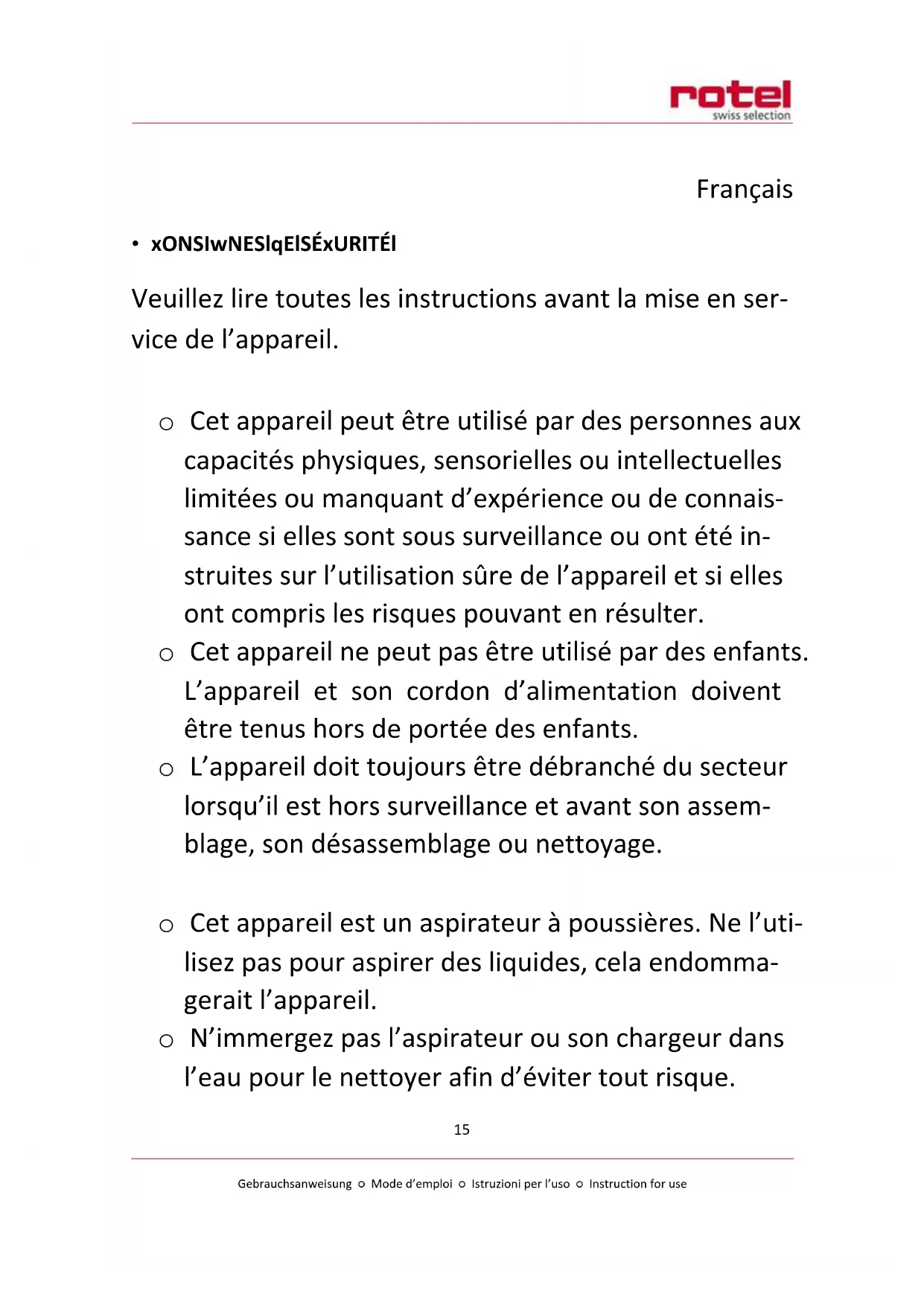 U6081CH - Balai ROTEL - Notice d'utilisation et mode d'emploi gratuit