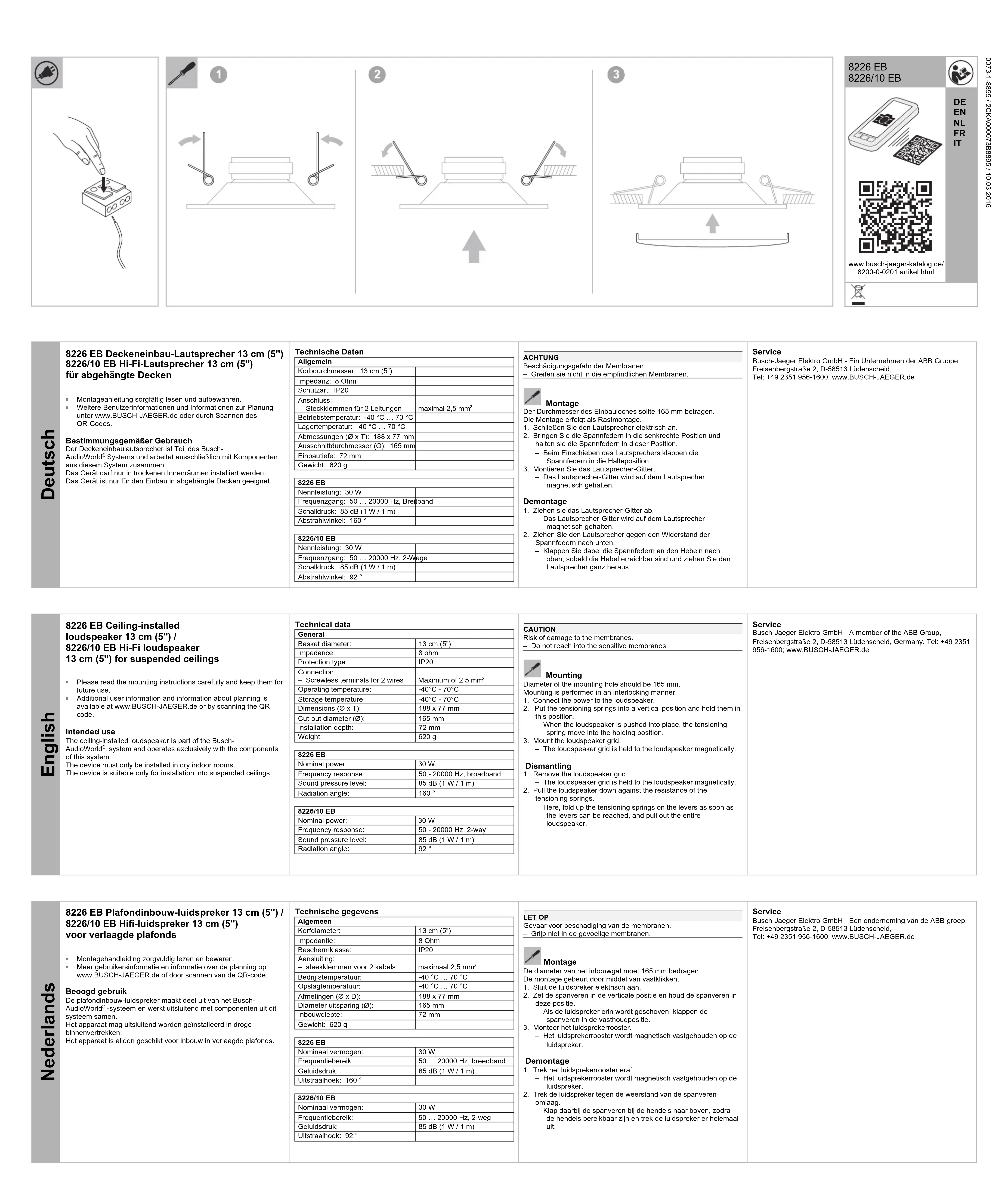 8226 EB Haut-parleur encasbrable dans le plafond 13 cm (5^ ) / 8226/10 EB Haut-parleur Hi-Fi 13 cm (5^ ) pour plafonds suspendus