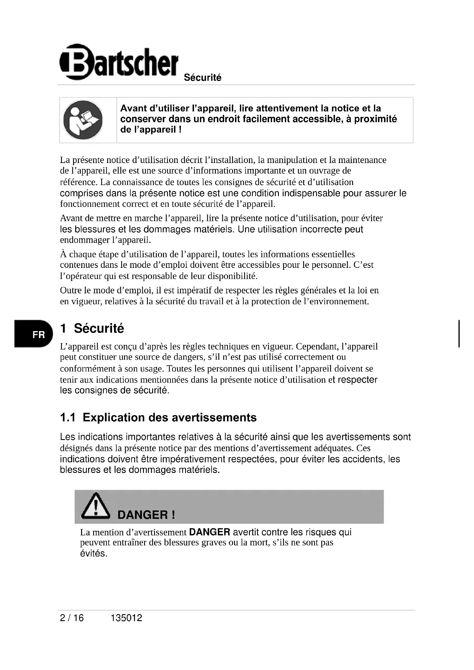Retrouvez gratuitement la notice de l'appareil 135012 BARTSCHER au format PDF.