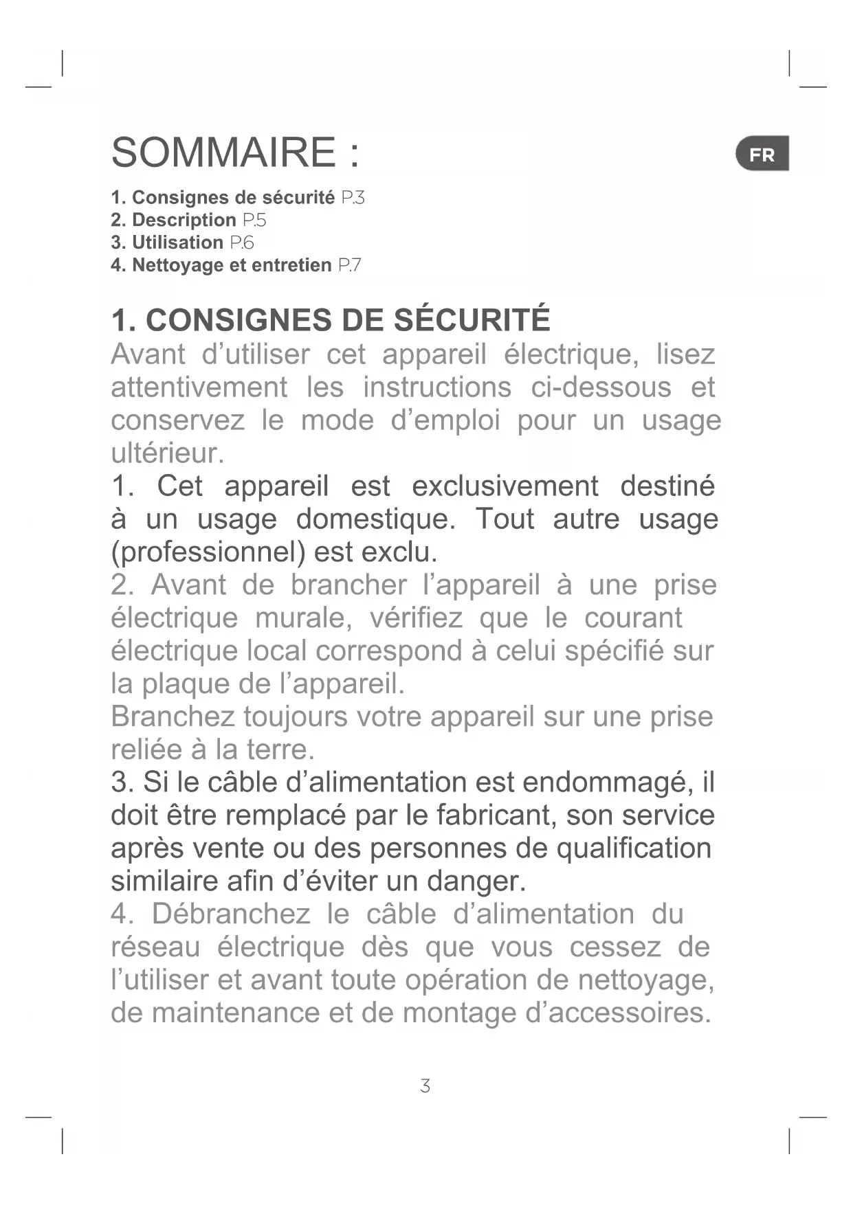 Avant d’utiliser cet appareil électrique, lisez attentivement les instructions ci-dessous et conservez le mode d’emploi pour un usage ultérieur.