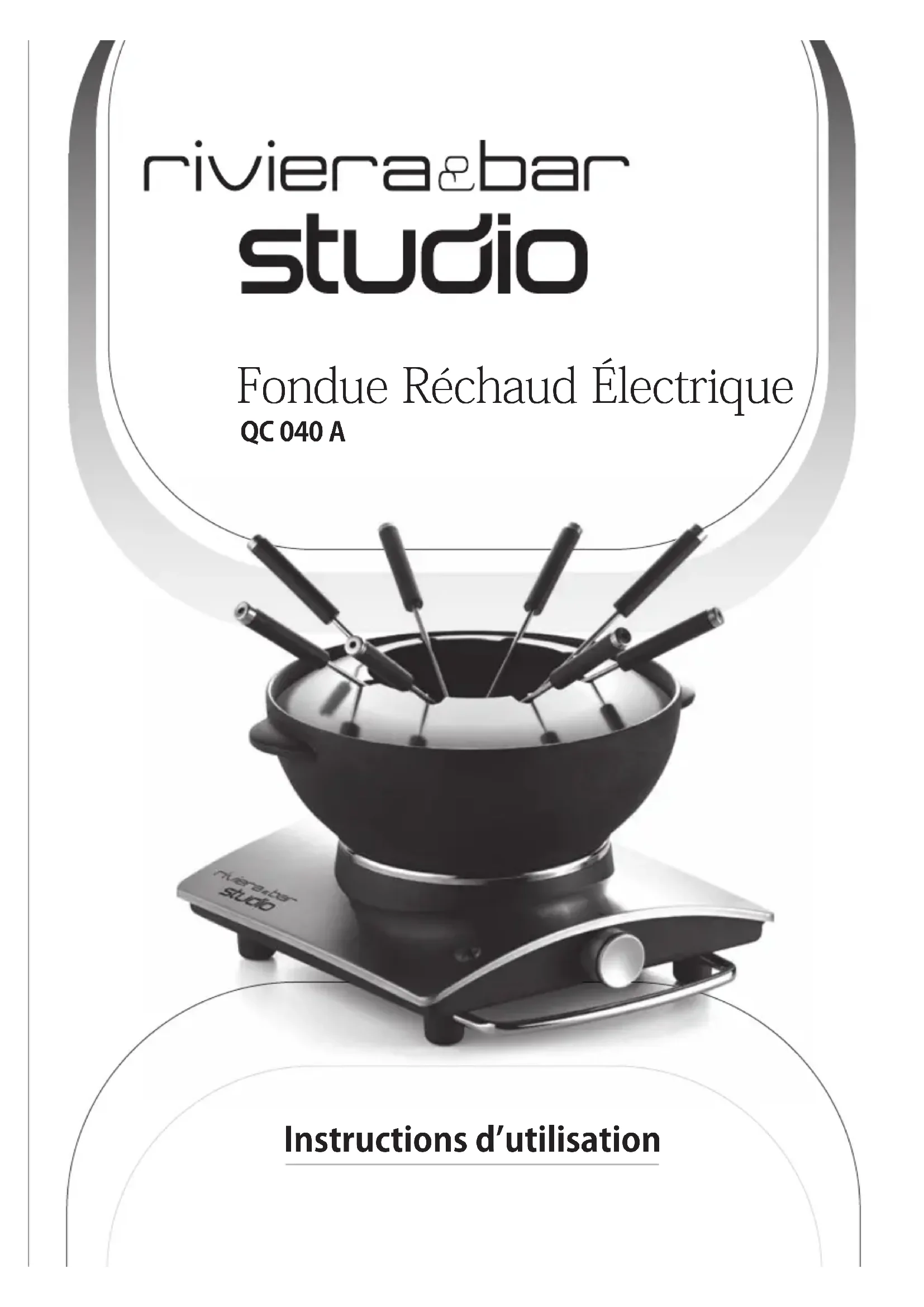 Fondue Réchaud Électrique QC 040 A Document et visuels non contractuels. Caractéristiques susceptibles d’être modiées sans préavis. Avril 2016 - V4 Instructions d’utilisation{ Avec sa gamme STUDIO, Riviera & Bar a mis tout son savoir-faire dans le développement de produits malins, sans compromis sur la qualité. Un design soigné, une compacité parfaitement adaptée à l’esprit contemporain : STUDIO, c’est la simplicité alliée à l’ecacité.