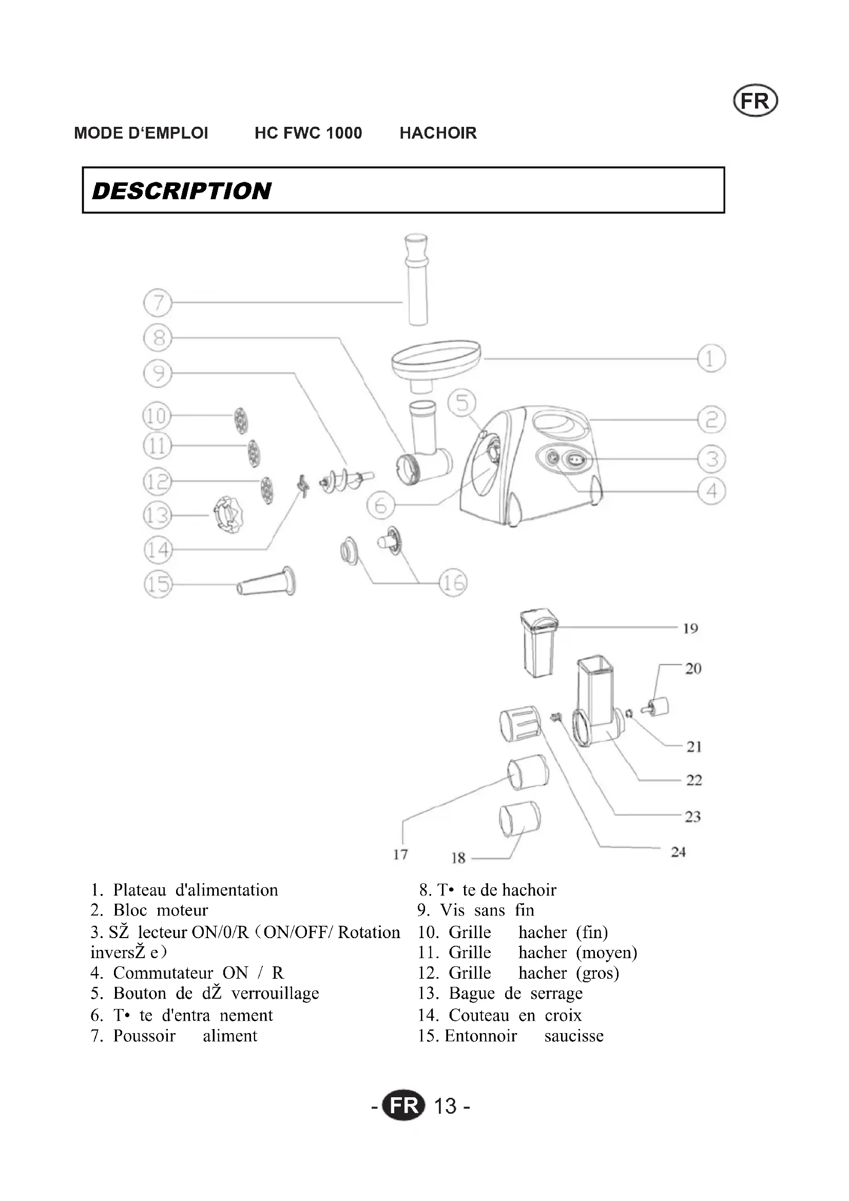 HC FWC 1000 - Hachoir RTC - Notice d'utilisation et mode d'emploi gratuit