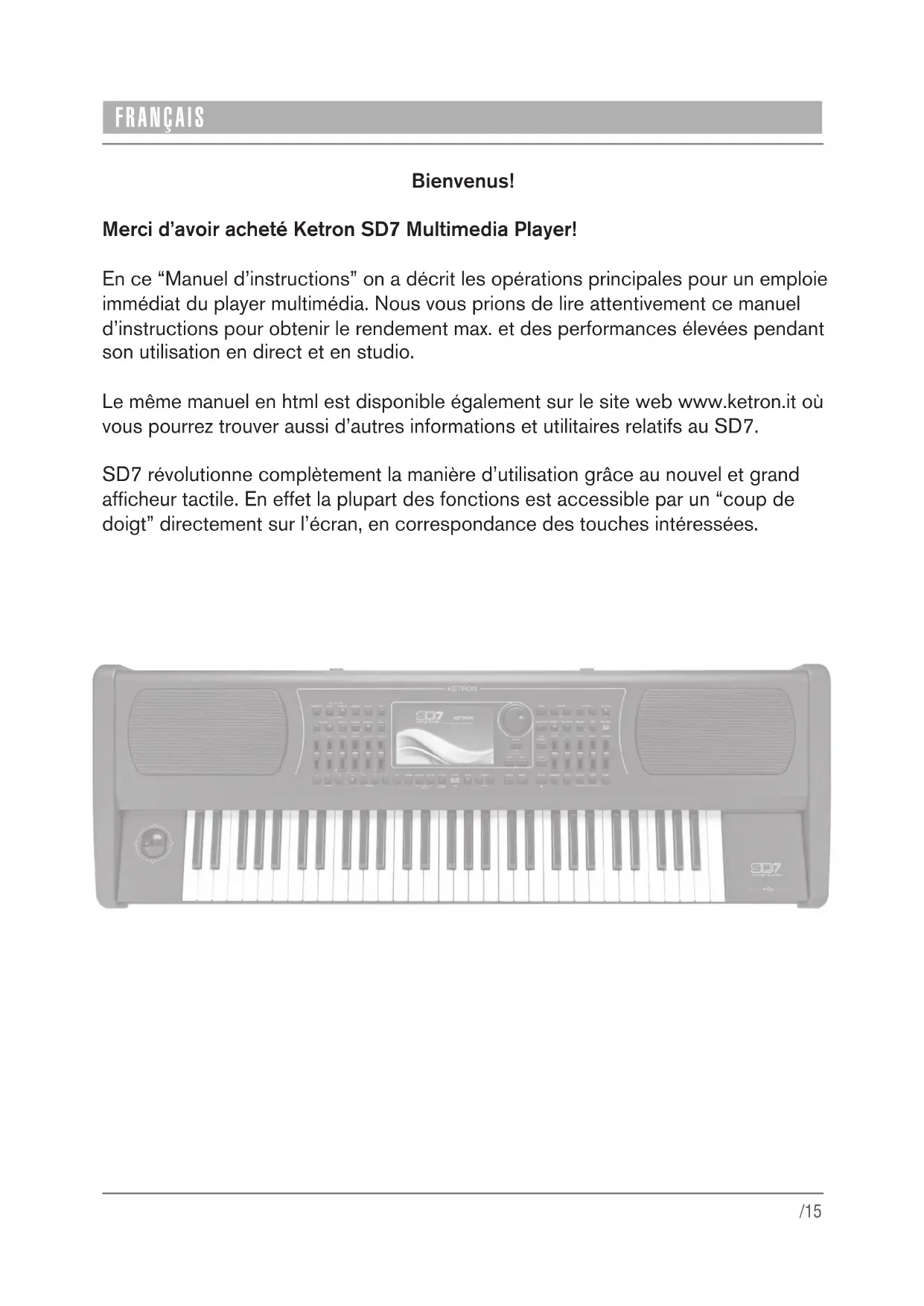 Retrouvez gratuitement la notice de l'appareil SD7 KETRON au format PDF.