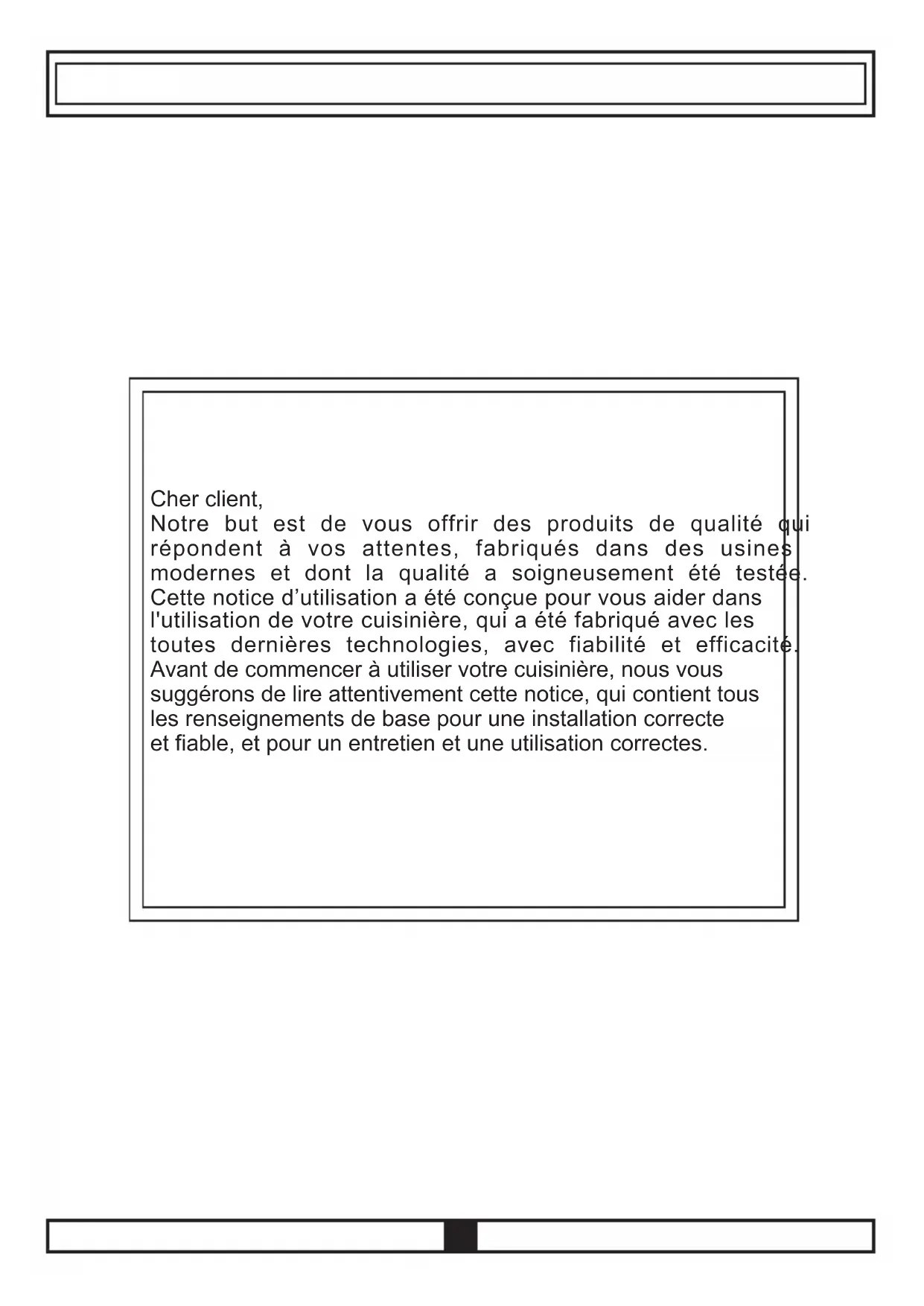 DINSTALLATION CUISINIERE VITROCERAMIQUE CV56MCAA-VTCher client, Notre but est de vous offrir des produits de qualité qui répondent à vos attentes, fabriqués dans des usines modernes et dont la qualité a soigneusement été testée. Cette notice dutilisation a été conçue pour vous aider dans l'utilisation de votre cuisinière, qui a été fabriqué avec les toutes dernières technologies, avec fiabilité et efficacité. Avant de commencer à utiliser votre cuisinière, nous vous suggérons de lire attentivement cette notice, qui contient tous les renseignements de base pour une installation correcte et fiable, et pour un entretien et une utilisation correctes.1 SOMMAIRE: