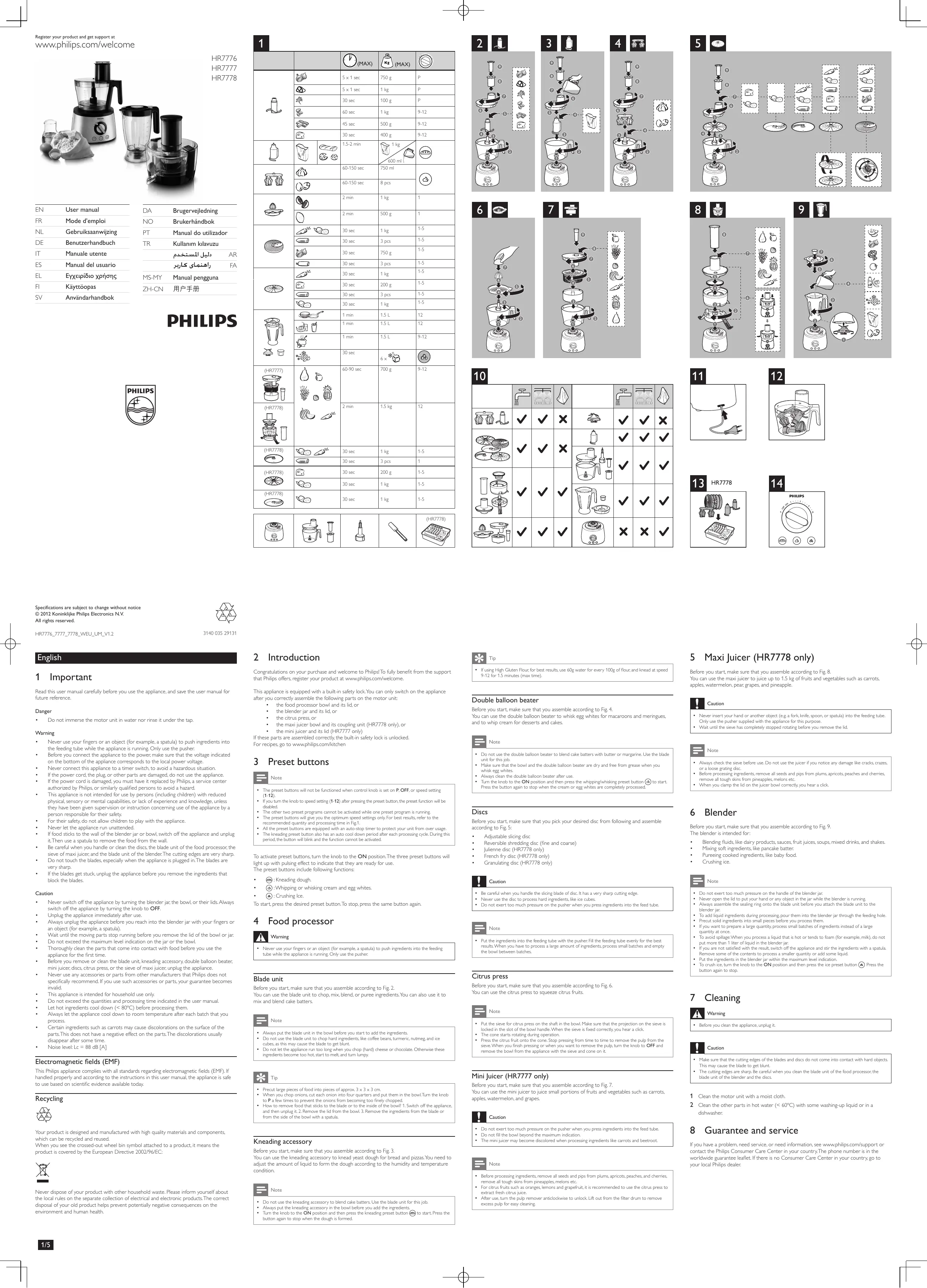 Notice PHILIPS HR7776/90,  HR7762/90 - page 1