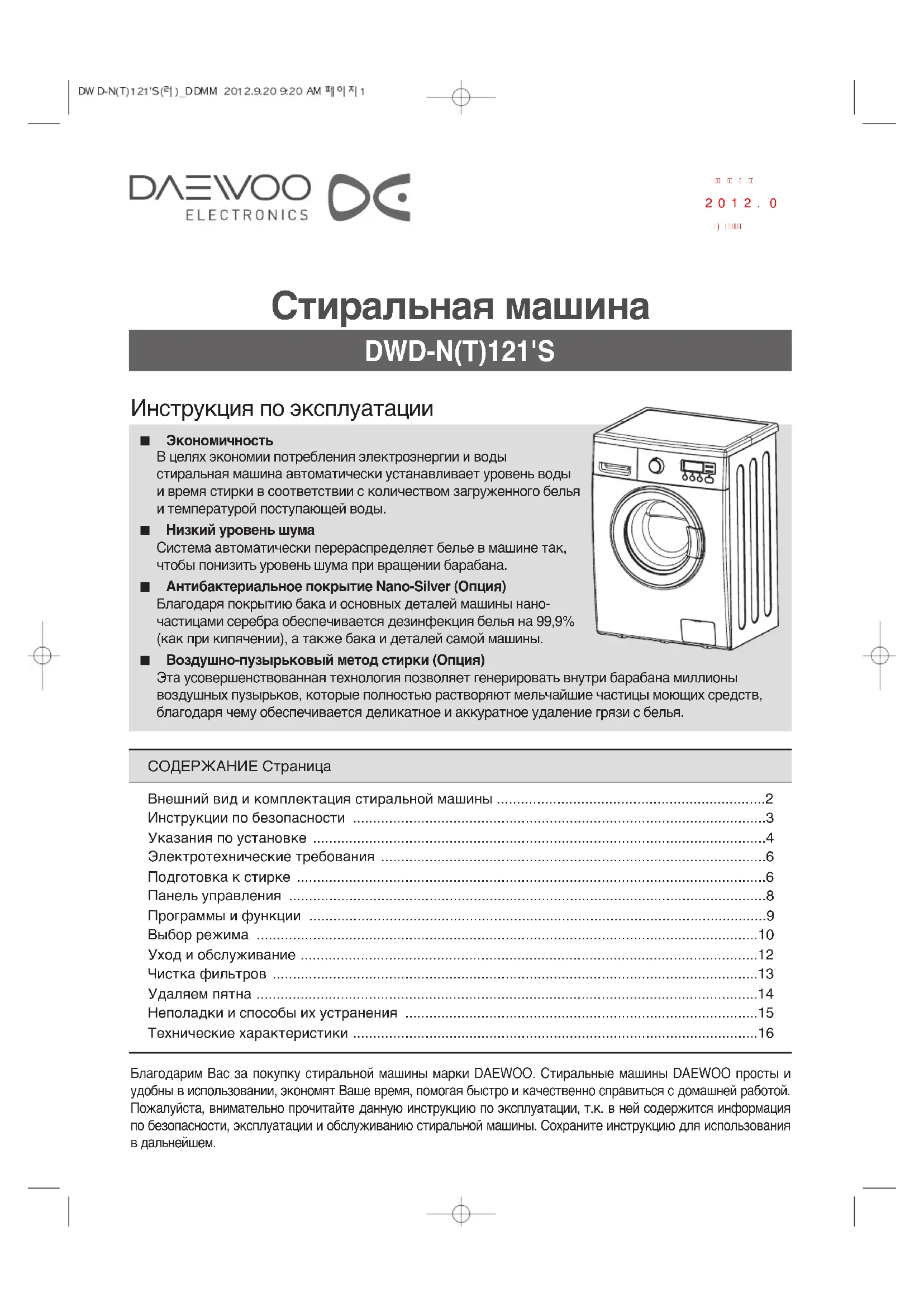 Retrouvez gratuitement la notice de l'appareil DWDNT1212 DAEWOO au format PDF.