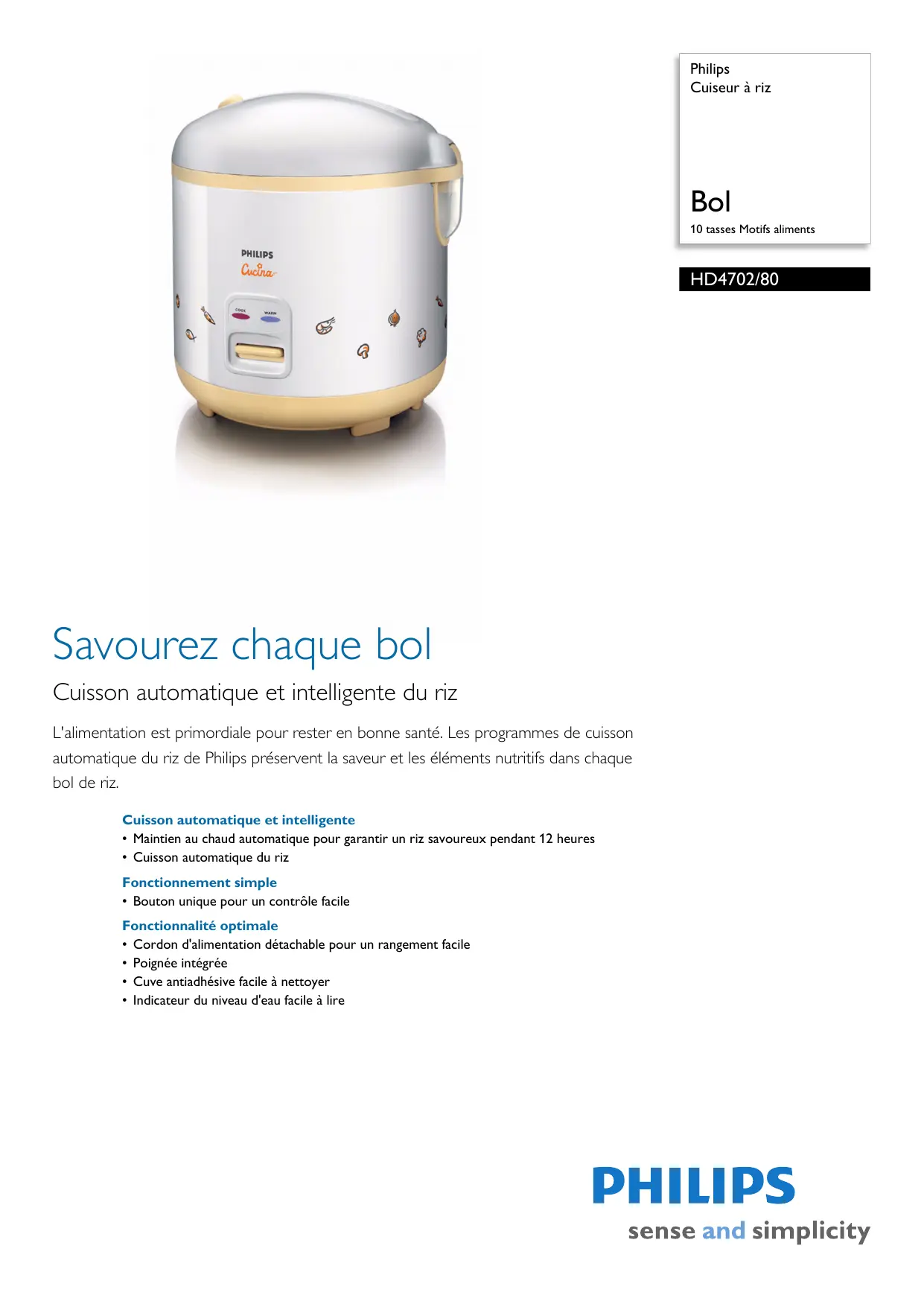 Retrouvez gratuitement la notice de l'appareil HD 4702 - BROCHURE PHILIPS au format PDF.