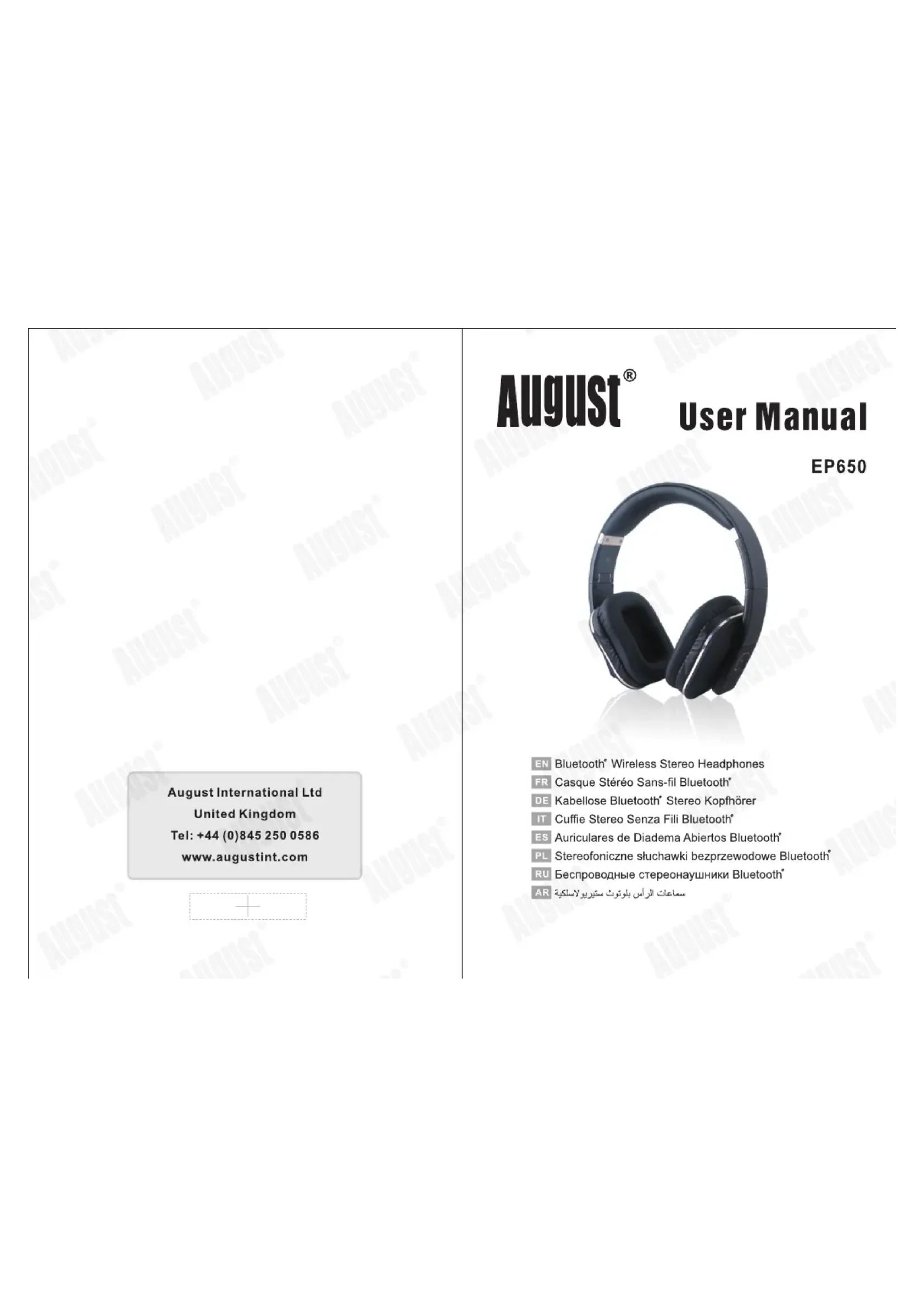 Pour toute assistance technique ou service après-vente, veuillez contacter par téléphone le +44 08452500586 ou par email à service-fr@augustint.com