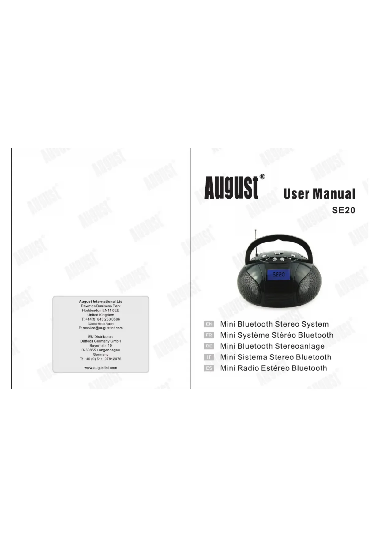 Retrouvez gratuitement la notice de l'appareil SE20 August au format PDF.