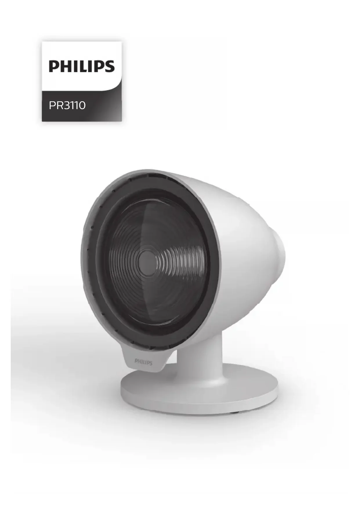 FrançaisProblème Cause possible Solution L’appareil ne s’allume pas. La prise du cordon d'alimentation n'est pas correctement insérée dans la prise murale. Insérez correctement la prise secteur dans la prise murale. La durée du traitement n'est pas réglée. Sélectionnez une durée de traitement en faisant tourner le bouton de la minuterie sur la durée désirée. Il y a une panne de courant. Connectez un autre appareil pour vérifier si l'alimentation fonctionne. La lampe est défectueuse. Contactez le ServiceConsommateursPhilips. Le cordon d'alimentation est endommagé. Si le cordon d’alimentation est endommagé, il doit être remplacé par Philips, un centre de service autorisé par Philips ou un technicien qualifié afin d’éviter tout accident. L'appareil émet un cliquetis après avoir été débranché de la prise murale. La minuterie n'est pas en position d'arrêt. Placez la minuterie en position d'arrêt. Caractéristiques techniques Modèle PR3110 Tension nominale (V) et fréquence nominale (Hz) 220-240V ~50-60Hz Puissance nominale (W) 150W Dispositif médical classifié IIa Classe d’isolation Classe2 Entrée d’eau IP21 TypeIR A/B/C Durée de vie prévue 5ans Mode de fonctionnement Continu Poids net Environ 1kg Dimensions externes 212x160x215mm (LxlxH) Irradiation 3323352mW/m-2 Rayonnement 11654169mW/sr-1m-2 Variation maximale du flux de la valeur moyenne sur la zone de traitement 1350 W/m2