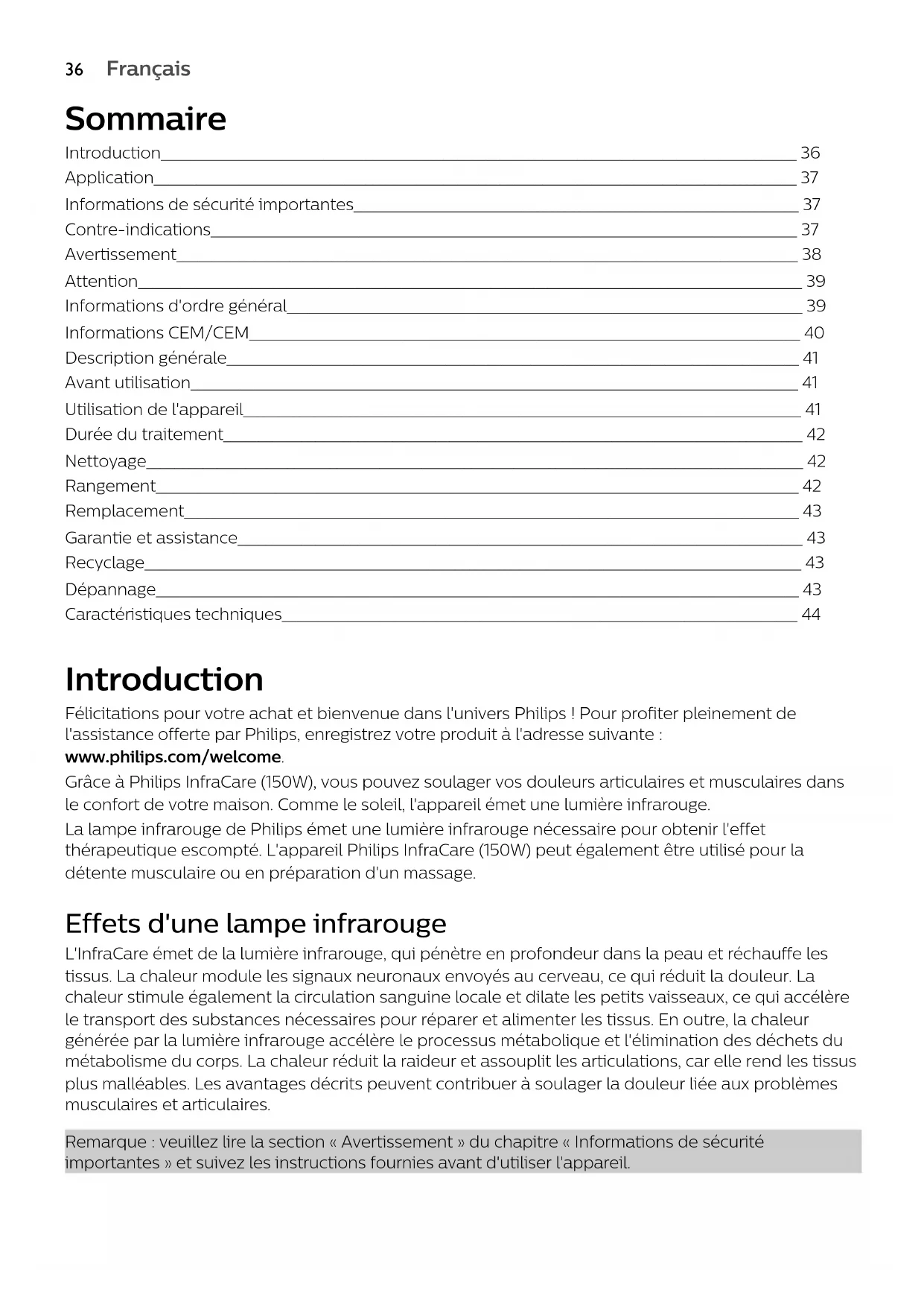 Grâce à Philips InfraCare (150W), vous pouvez soulager vos douleurs articulaires et musculaires dans le confort de votre maison. Comme le soleil, l'appareil émet une lumière infrarouge.