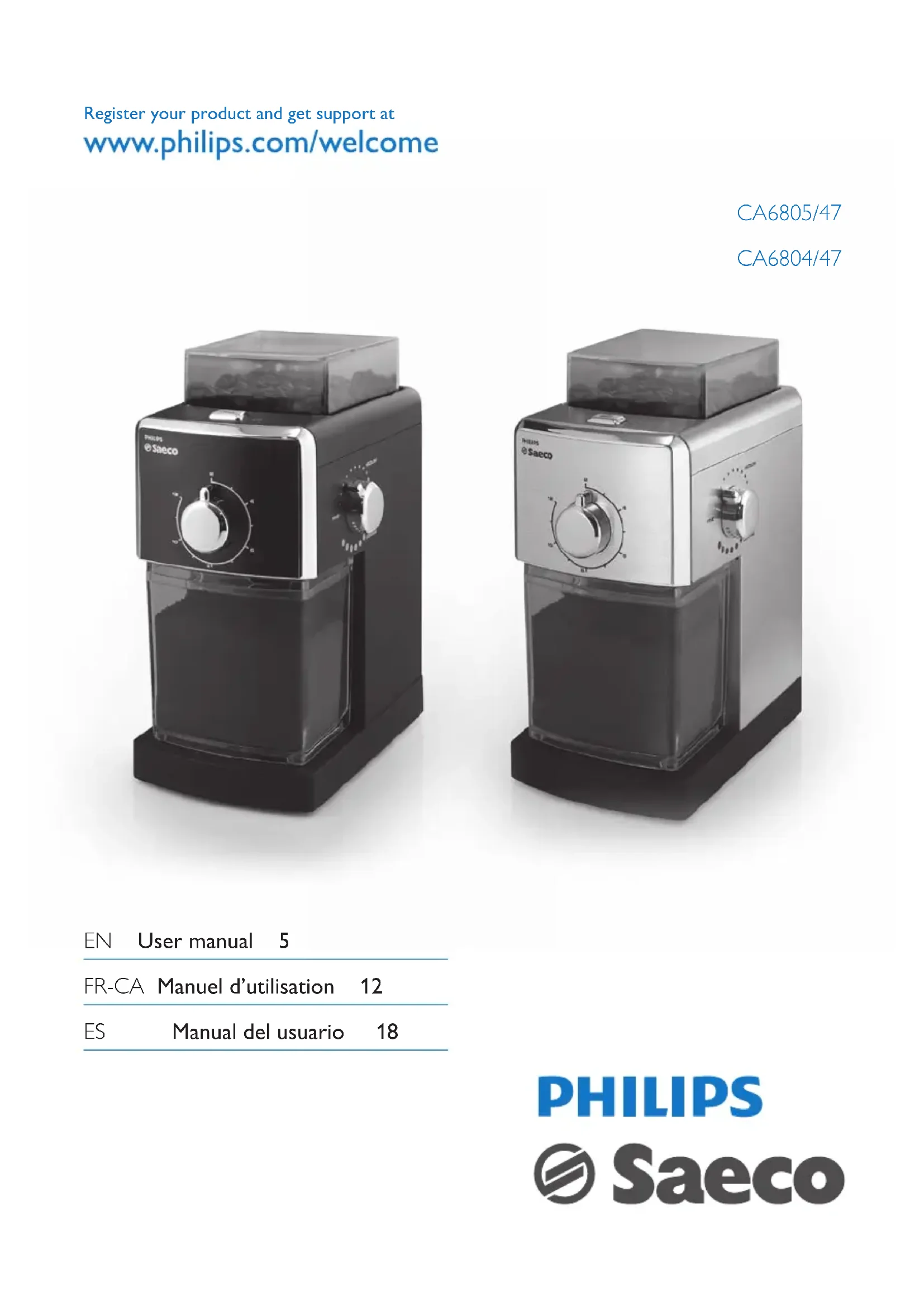 Saeco CA6804 - Moulin à café PHILIPS - Notice d'utilisation et mode d'emploi gratuit