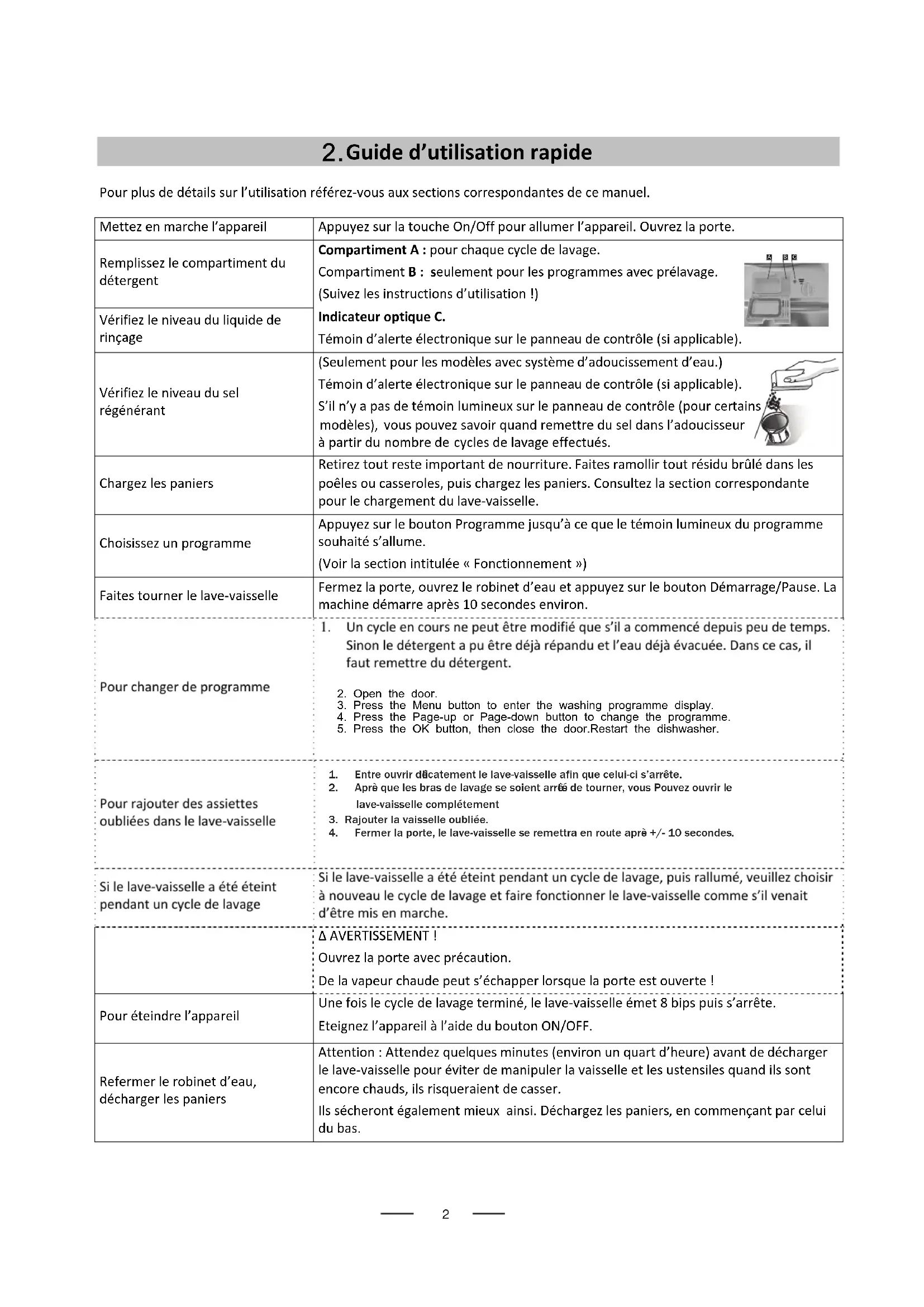 LVF68ITALisez ce manuel Cher Client, Veuillez lire ce manuel avec attention avant d’utiliser ce lave-vaisselle, il vous aidera à l’utiliser et à l’entretenir correctement. Veuillez le conserver pour consultation ultérieure. Le cas échéant, fournissez-le au propriétaire suivant de cet appareil.