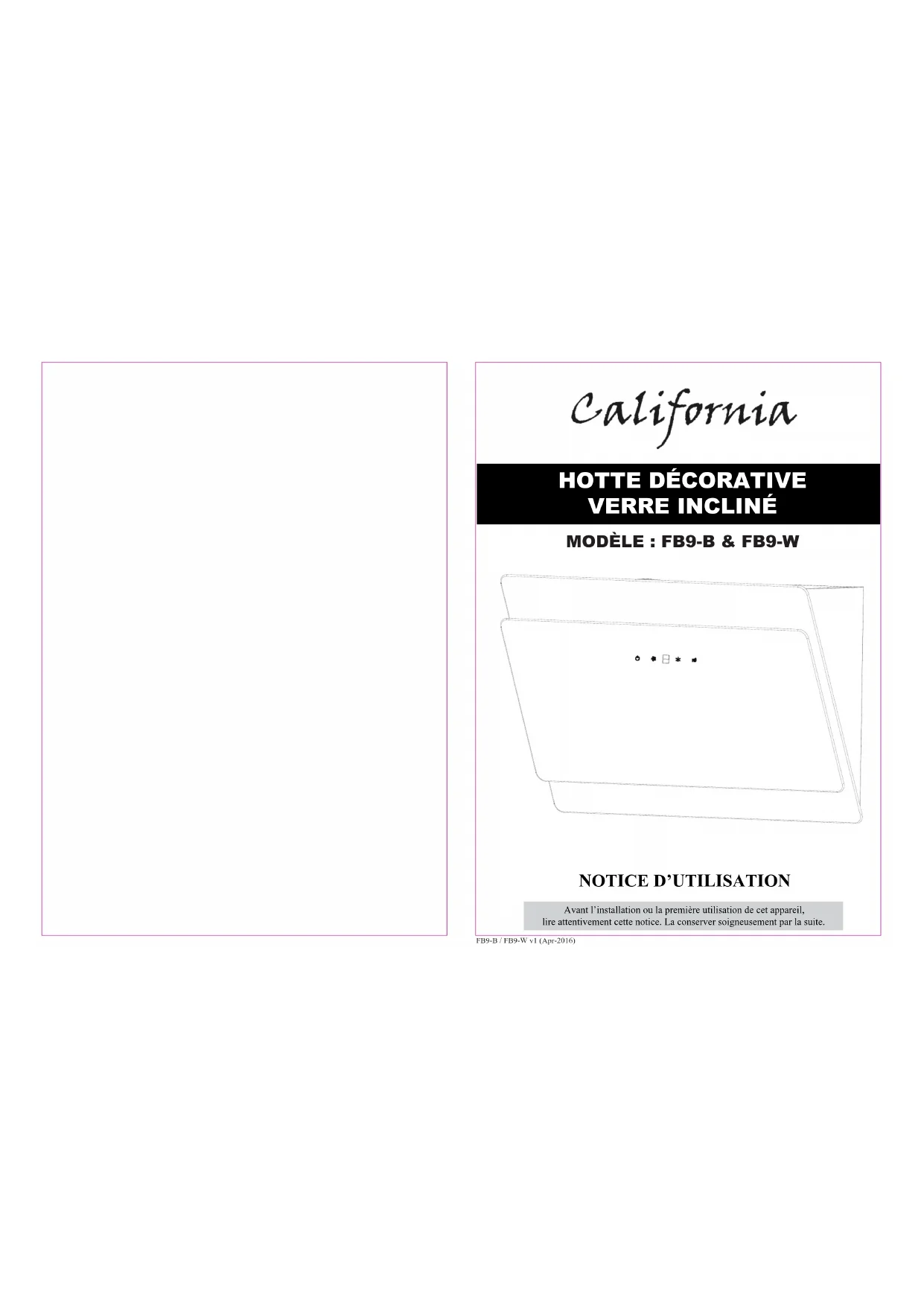 FB9W - Hotte CALIFORNIA - Notice d'utilisation et mode d'emploi gratuit
