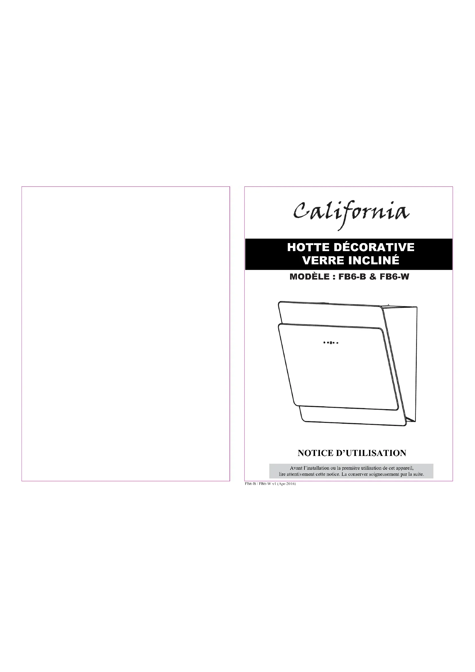 FB6W - Hotte CALIFORNIA - Notice d'utilisation et mode d'emploi gratuit