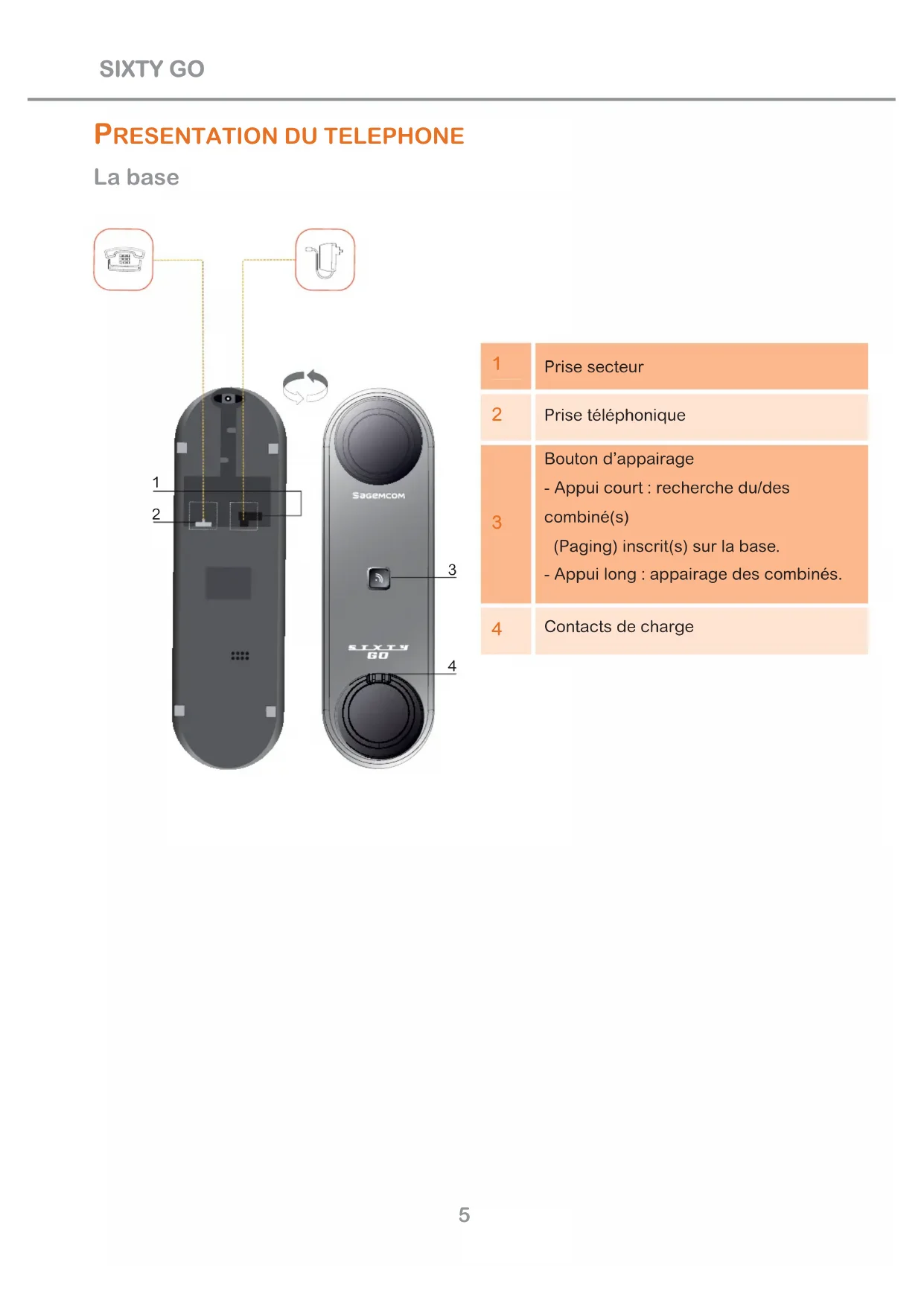 Avant la première utilisation, le combiné doit être rechargé pendant 12 heures .SIXTY GO