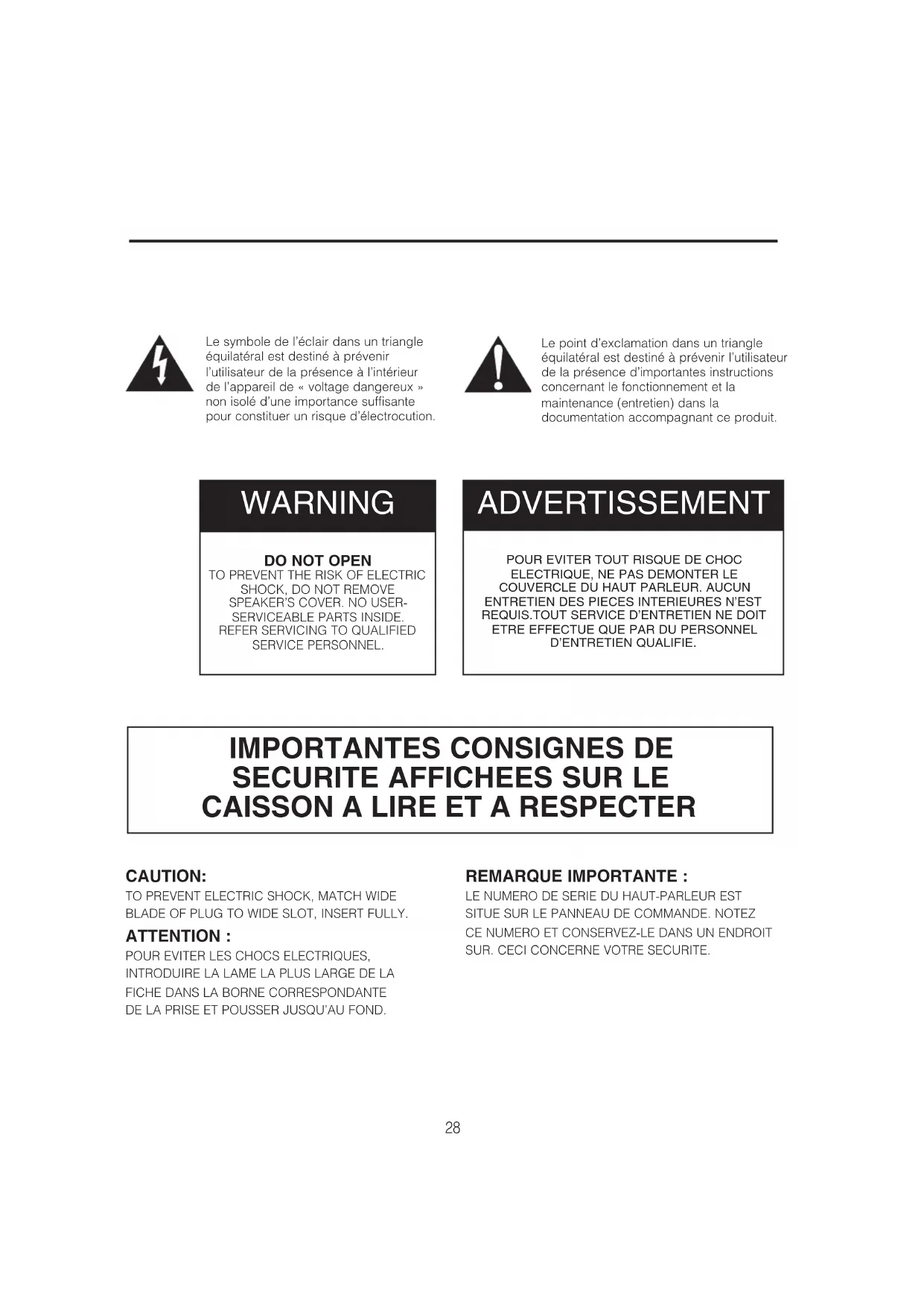 INSTRUCTIONS IMPORTANTES CONCERNANT LA SECURITE