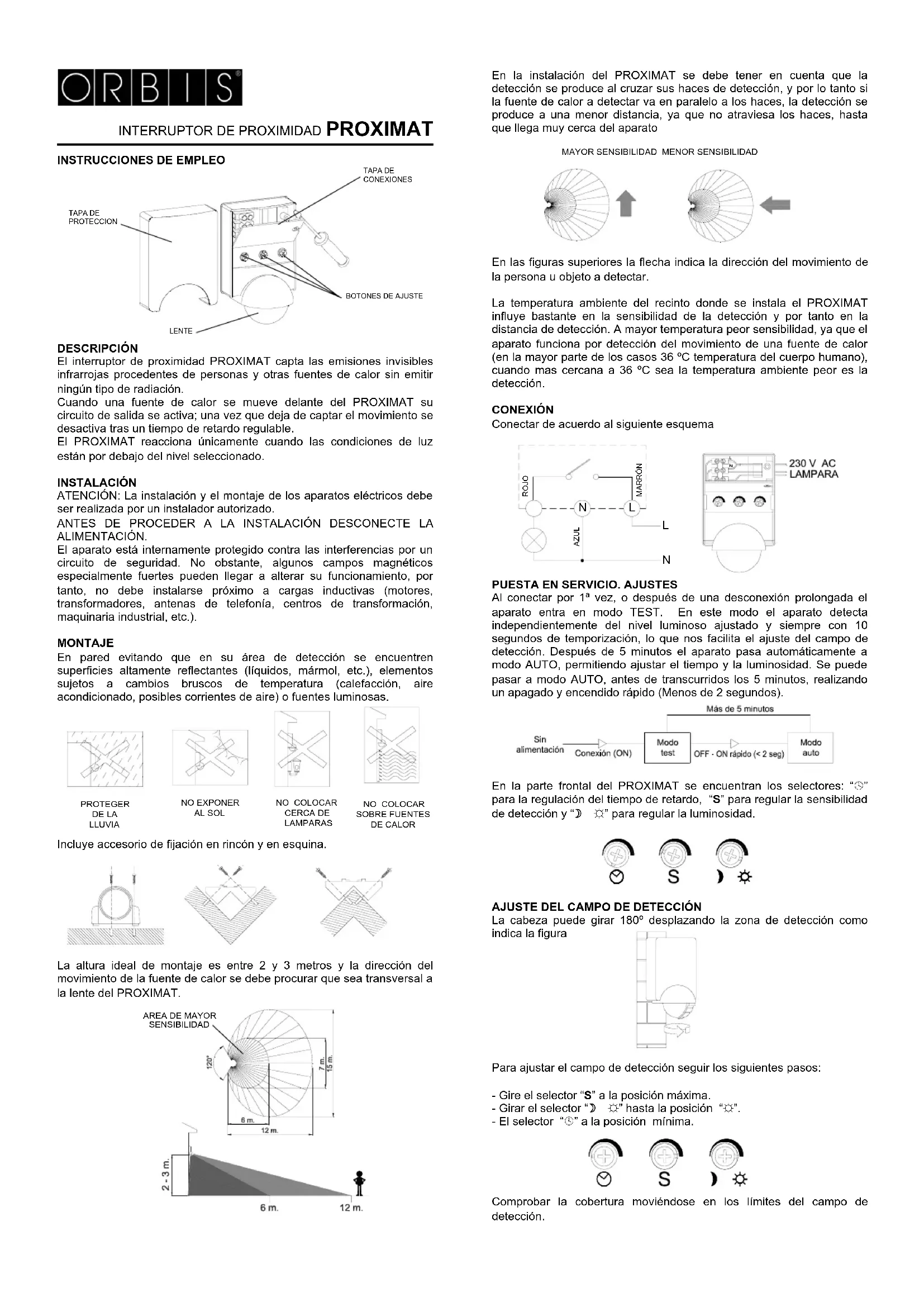 Proximat - Détecteur de mouvements Orbis - Notice d'utilisation et mode d'emploi gratuit