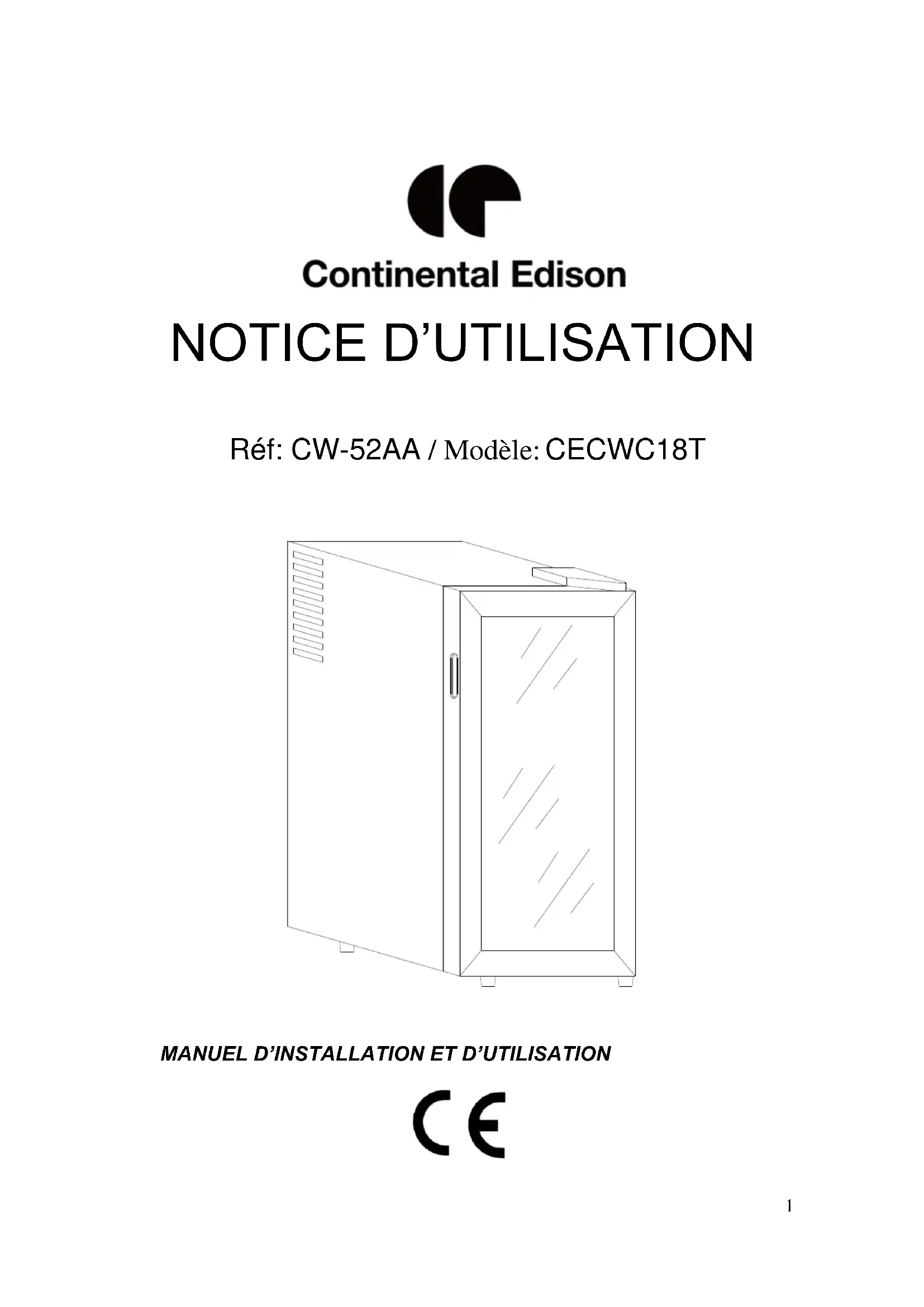 CECWC18T - Cave à vin CONTINENTAL EDISON - Notice d'utilisation et mode d'emploi gratuit