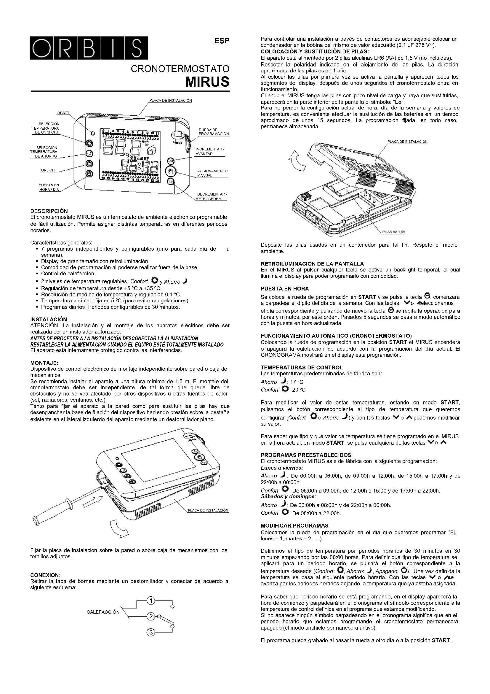 Le chronothermostat MIRUS est un thermostat d'ambiance électronique programmable facile à utiliser. Il permet d'assigner différentes températures pendant différents intervalles horaires.