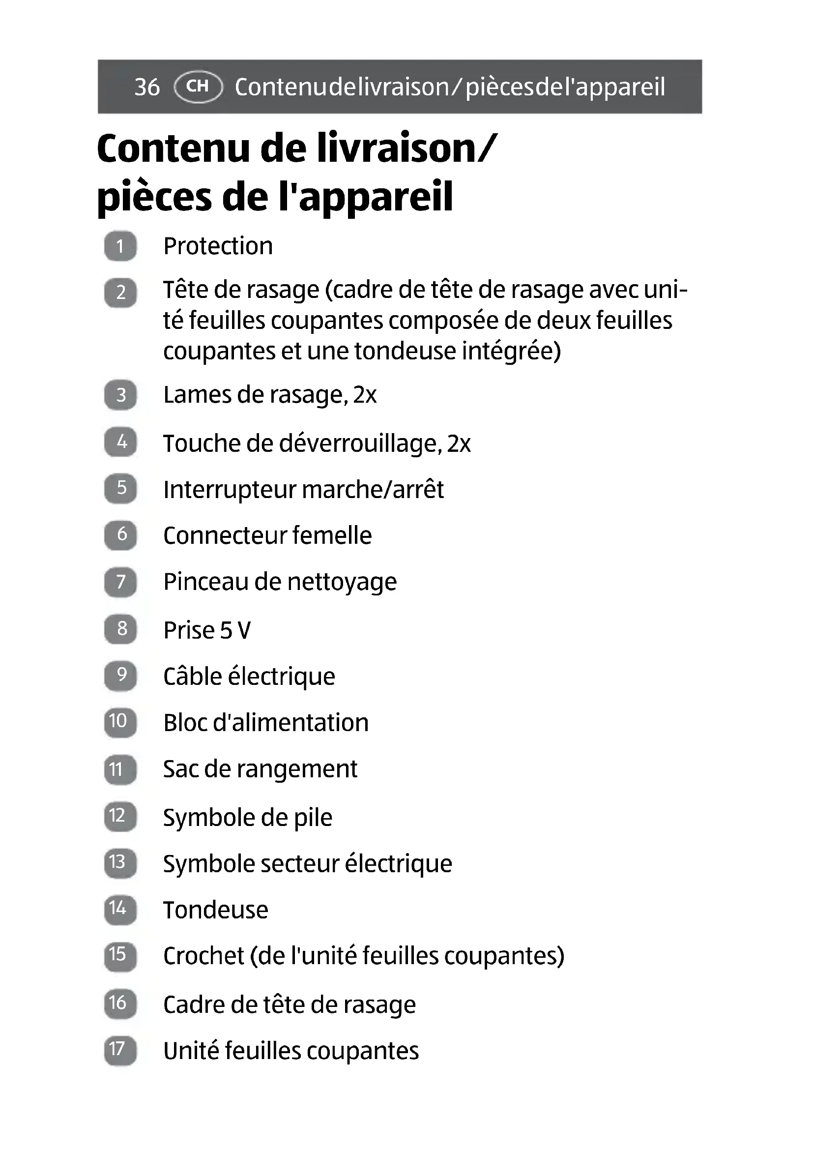 Pour garantir une compréhension facile, le rasoir électrique rechargeable et secteur est appelé par la suite seulement «rasoir».