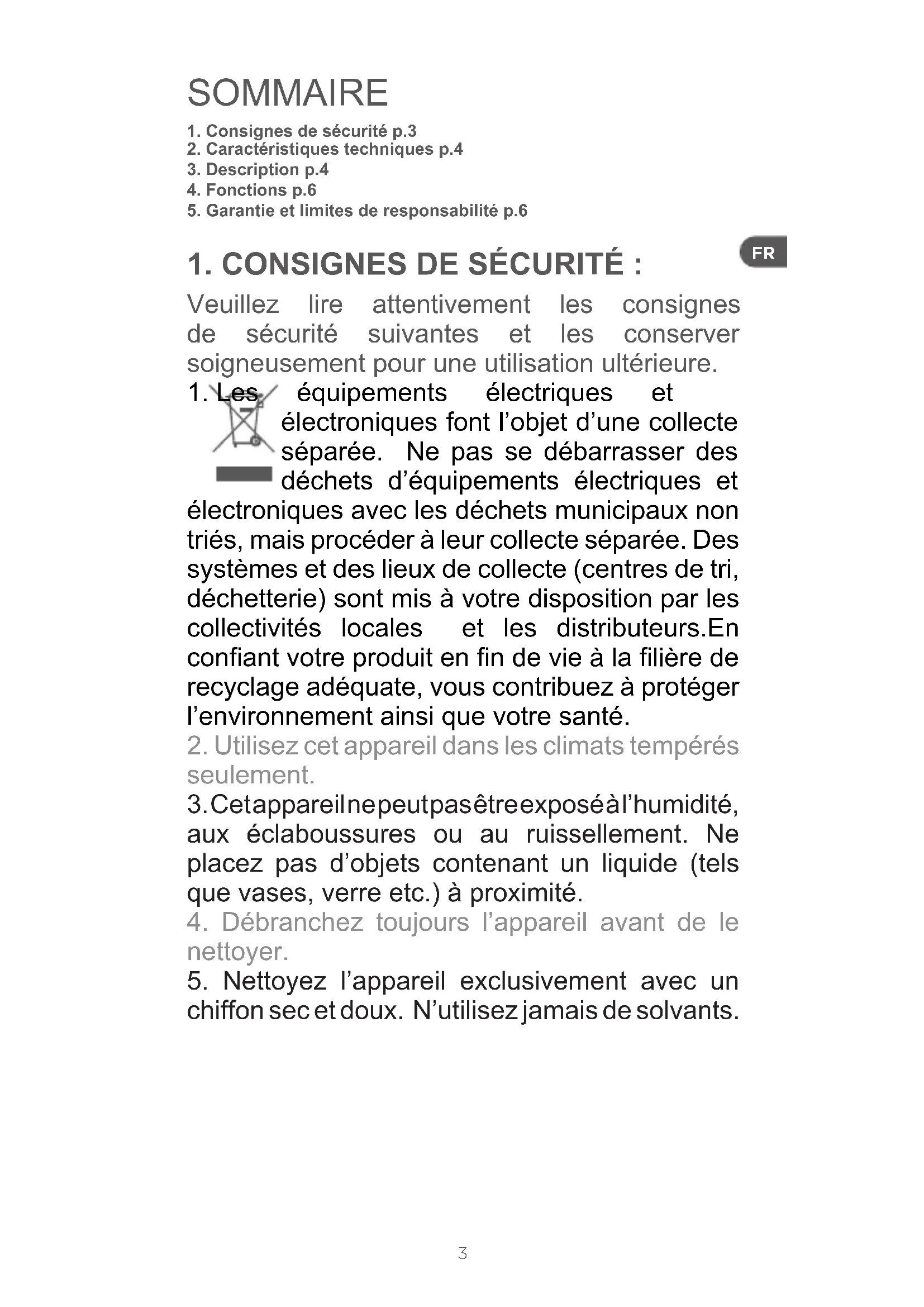 1. Consignes de sécurité p.3
