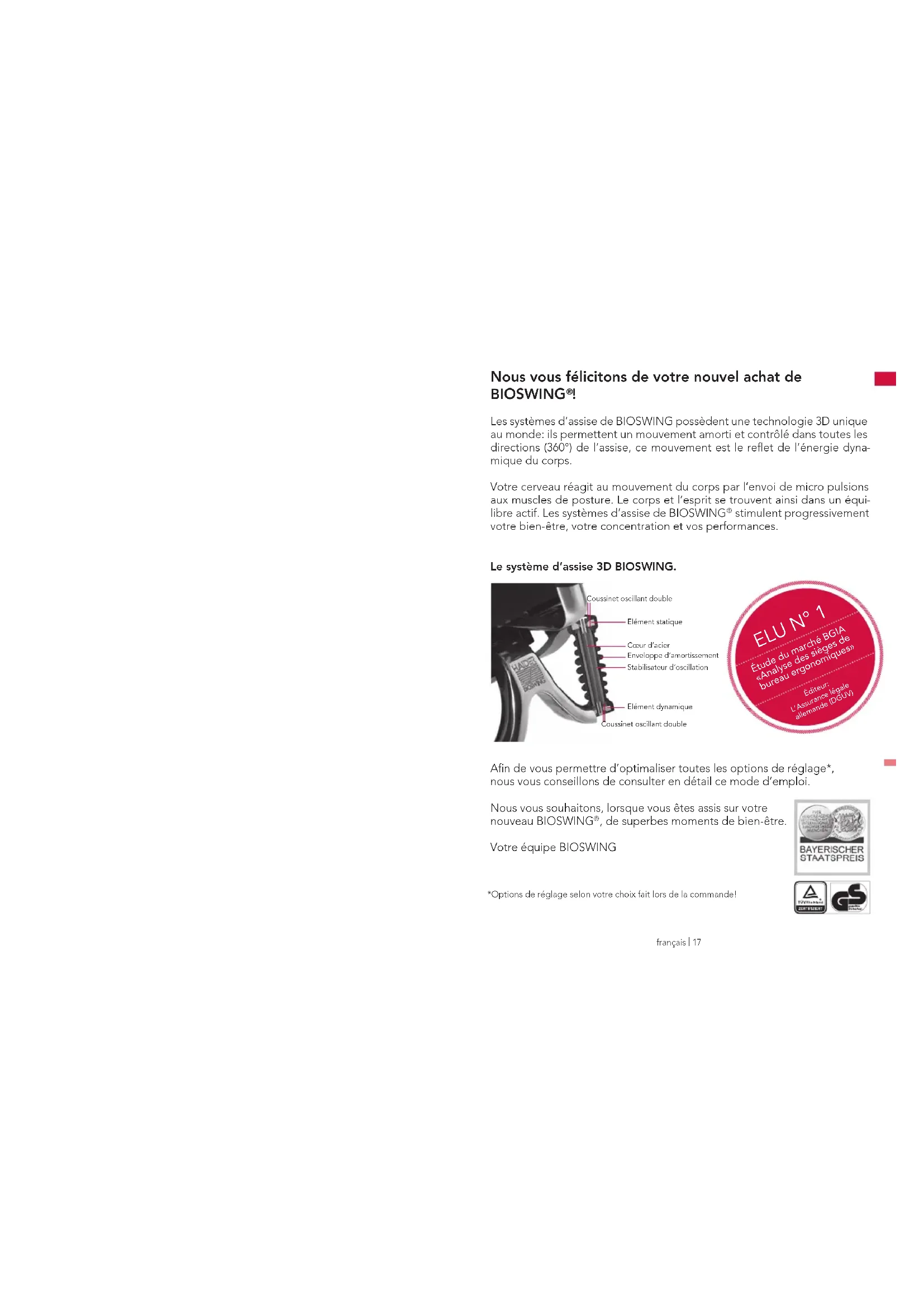 Nous vous souhaitons, lorsque vous estes assis sur votre nouveau BIOSWING, de superbes moments de bien-etre.